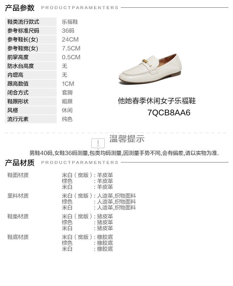 | 配跟:有 | 上市时间:2026年春季 | 鞋类流行款式:乐福鞋 | 鞋头款式:圆头 | 鞋面图案:纯色 |