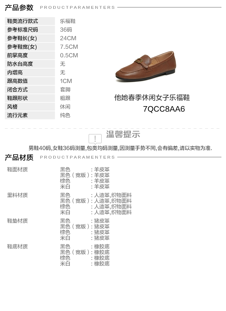 | 配跟:有 | 上市时间:2026年春季 | 鞋类流行款式:乐福鞋 | 鞋头款式:圆头 | 鞋面图案:纯色 |