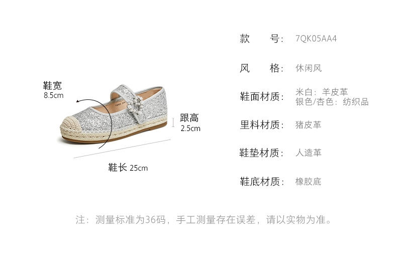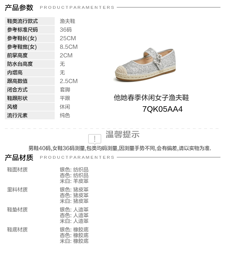 | 参考鞋长(女):25CM | 参考鞋宽(女):8.5CM | 风格:休闲 | 年份:2024年 | 色系:银色 |