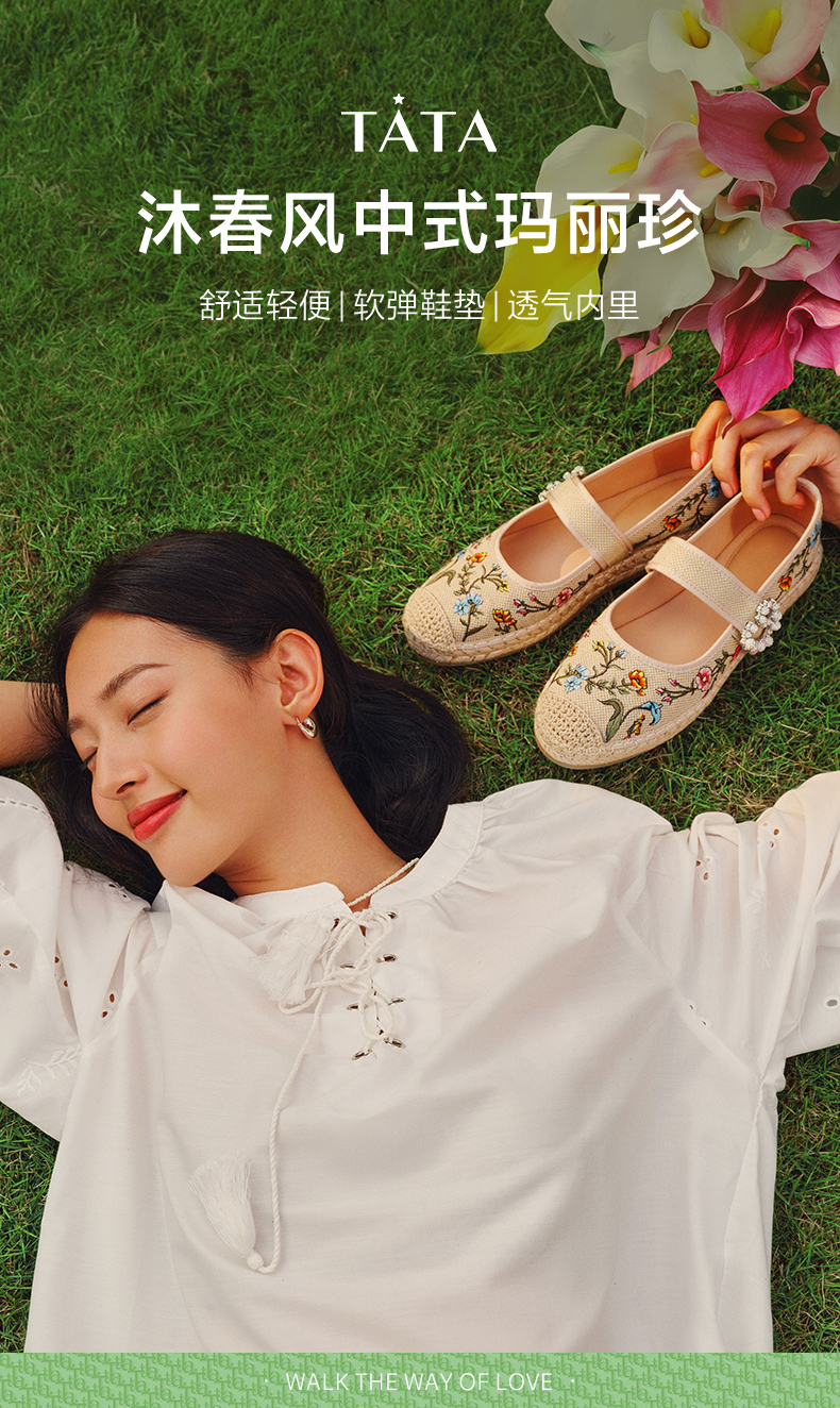 他她(Tata),品牌成立于2003年,致力为都市年轻人群提供时尚潮流、具有性价比的鞋履产品。十五年来“踏踏”的着地声,寓意都市白领元气满满的生活,如时尚“伴履”的TATA一直陪伴左右、伴随走出TATA的时尚步伐。2017年TATA美丽蜕变,TATA STAR元素的加入预示品牌将成为闪亮、前端的时尚鞋履品牌。
