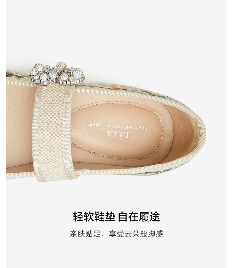 | 款式季节:春季 | 鞋垫材质:人造革 | 渠道划分:线下同步 | 前掌高度:2CM | 皮质特征:织物 |