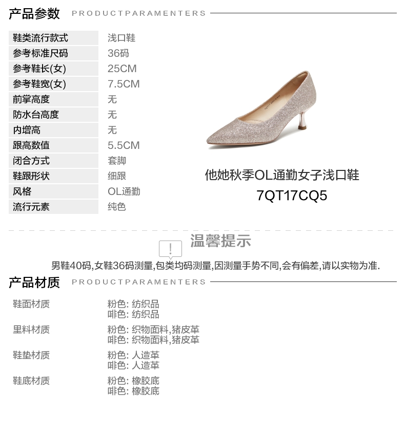| 风格:OL通勤 | 跟高数值:5.5CM | 色系:粉色 | 配跟:有 | 性别:女子 |
