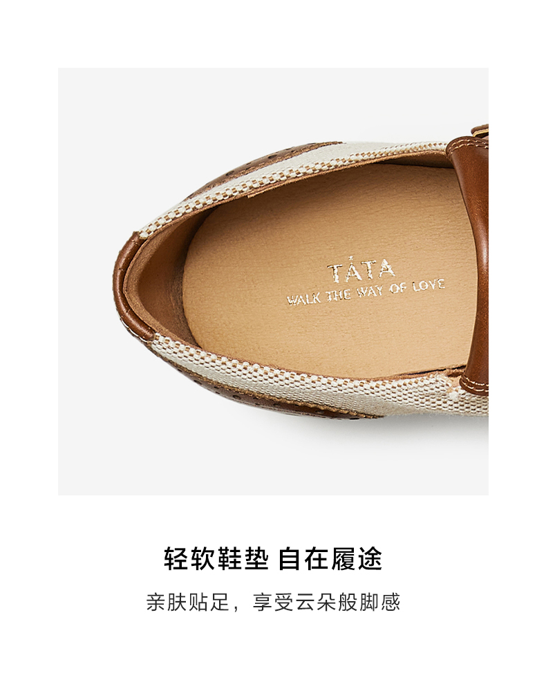 他她(Tata),品牌成立于2003年,致力为都市年轻人群提供时尚潮流、具有性价比的鞋履产品。十五年来“踏踏”的着地声,寓意都市白领元气满满的生活,如时尚“伴履”的TATA一直陪伴左右、伴随走出TATA的时尚步伐。2017年TATA美丽蜕变,TATA STAR元素的加入预示品牌将成为闪亮、前端的时尚鞋履品牌。