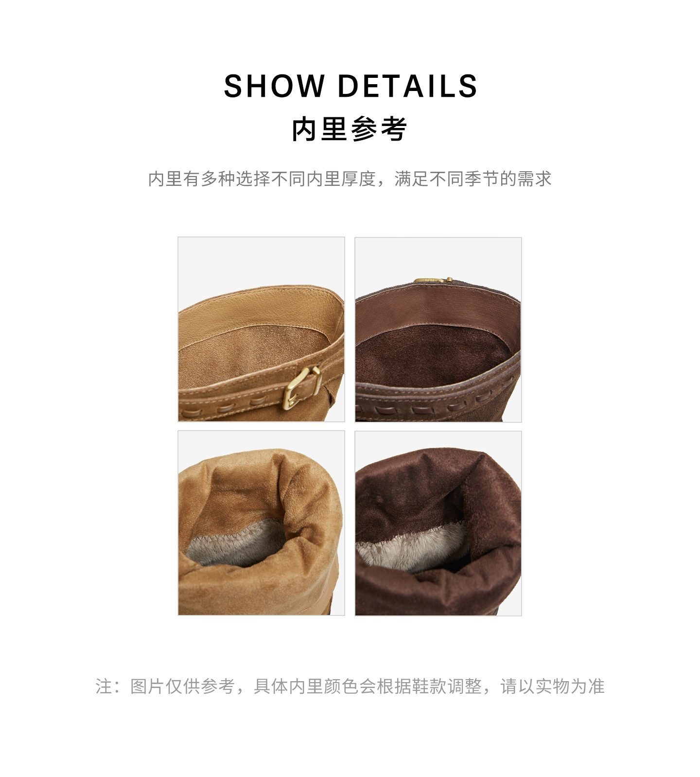 | 靴筒筒面材质:牛剖层革 | 里料材质:人造短毛绒 | 制鞋工艺:胶贴皮鞋 | 鞋垫材质:人造短毛绒 | 款式季节:冬季 |
