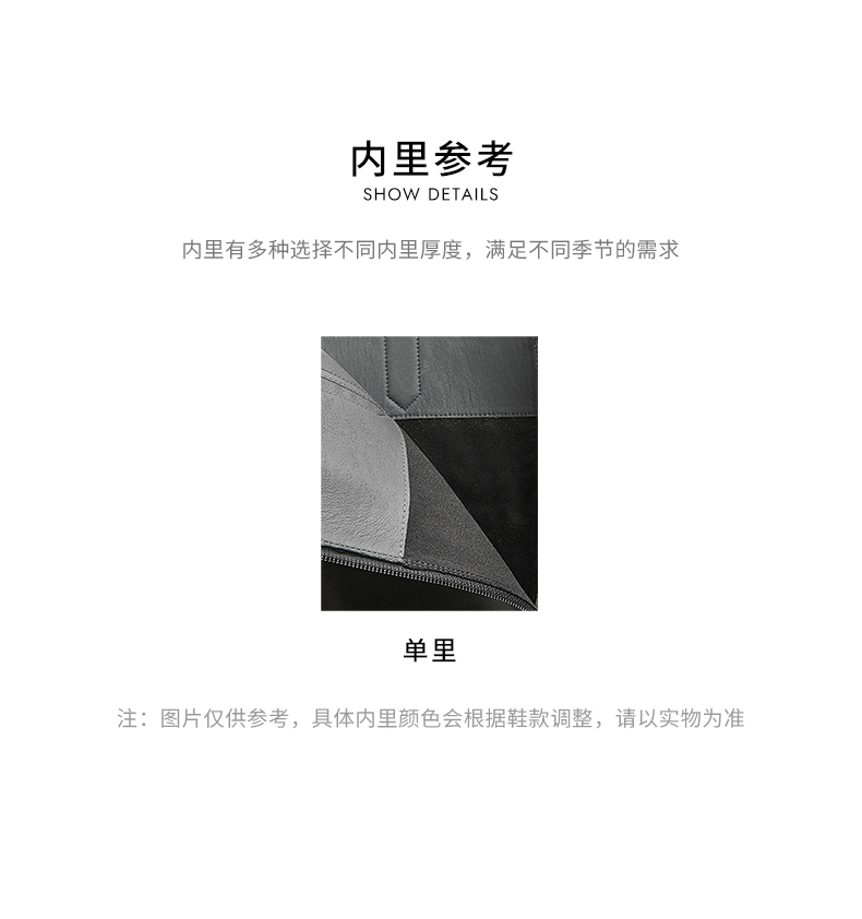 | 鞋底材质:橡胶底 | 靴筒内里材质:织物面料 | 内增高:无 | 鞋面材质:牛皮革合成革 | 适用场合:日常休闲 |