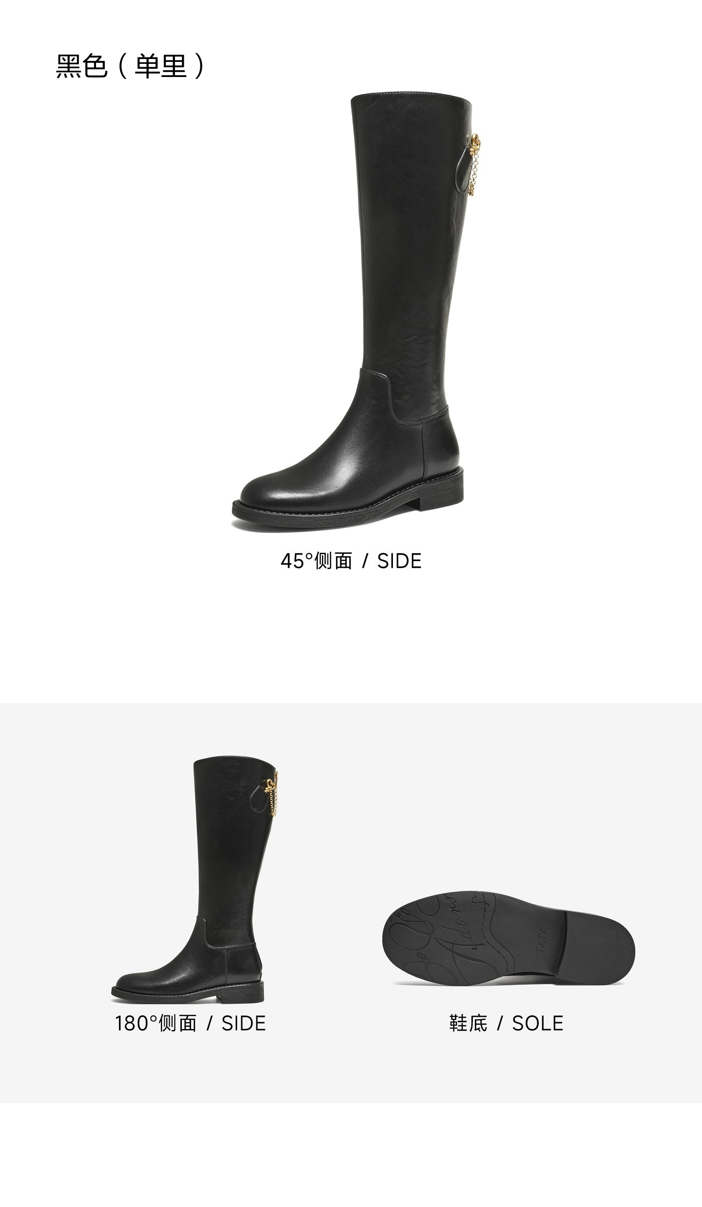 | 鞋底材质:橡胶底 | 靴筒内里材质:织物面料 | 内增高:无 | 鞋面材质:牛皮革 | 闭合方式:后拉链 |
