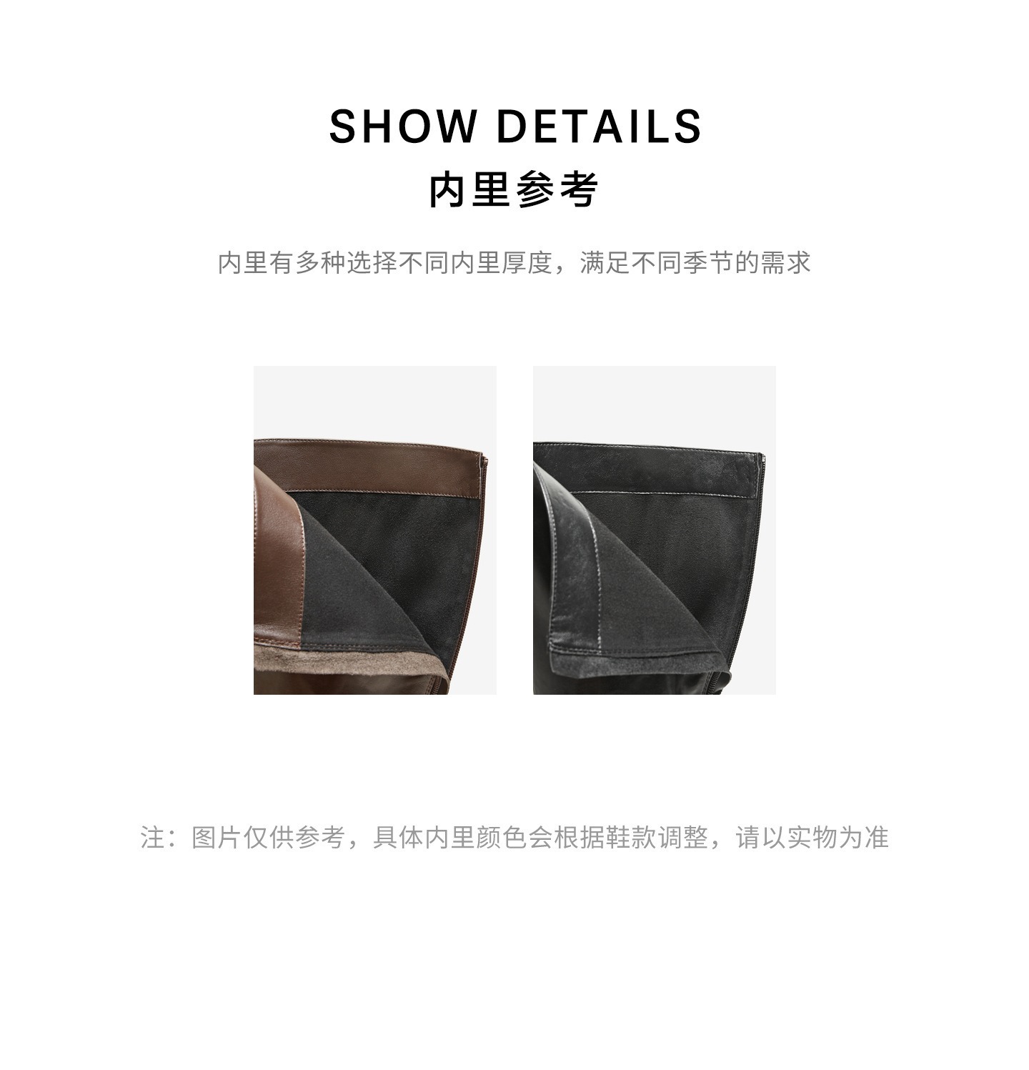 | 靴筒筒面材质:牛皮革 | 靴筒小腿围:30CM | 里料材质:织物面料 | 制鞋工艺:胶贴皮鞋 | 鞋垫材质:织物面料 |