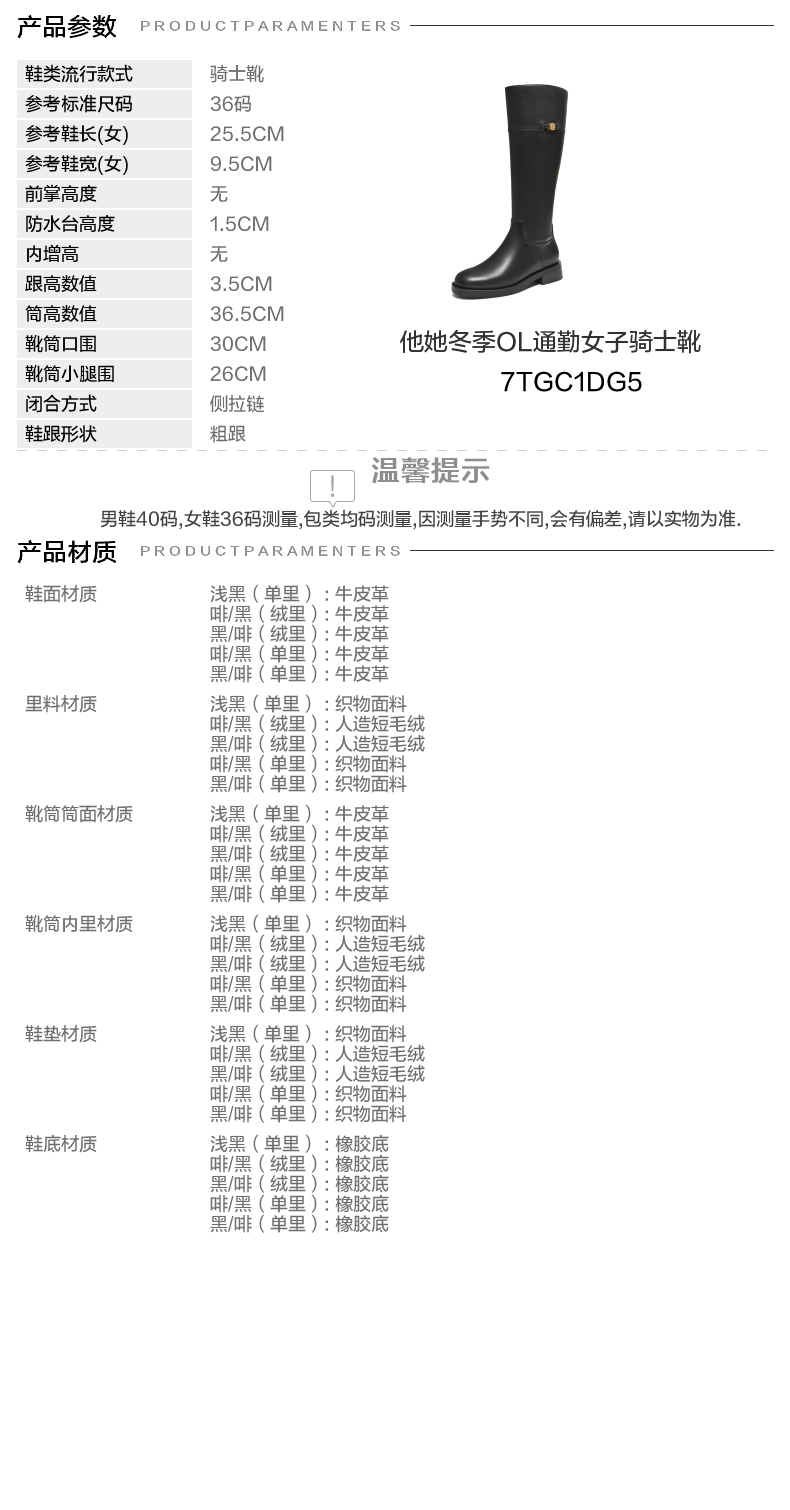 • TATA/他她2025冬百搭时尚简约女骑士靴新款7TGC1DG5