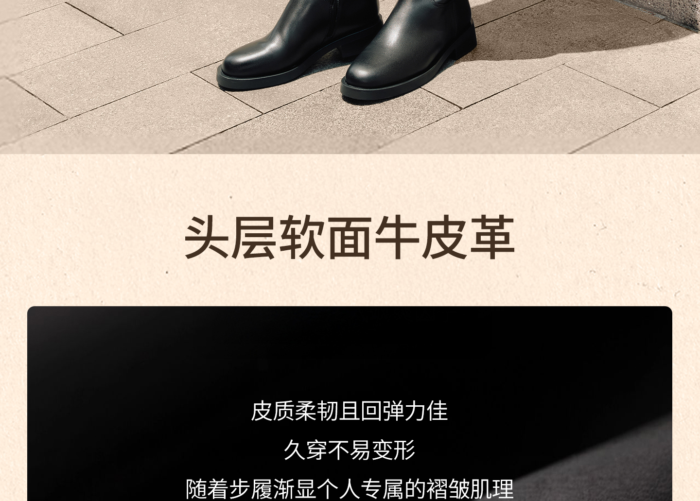 | 鞋底材质:橡胶底 | 靴筒内里材质:织物面料 | 内增高:无 | 鞋面材质:牛皮革 | 闭合方式:侧拉链 |