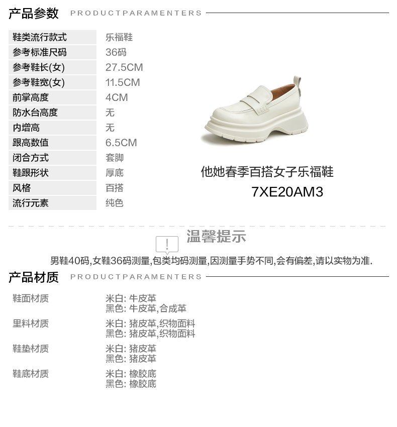 | 鞋跟形状:厚底 | 流行元素:纯色 | 参考鞋长(女):27.5CM | 参考鞋宽(女):11.5CM | 风格:百搭 |