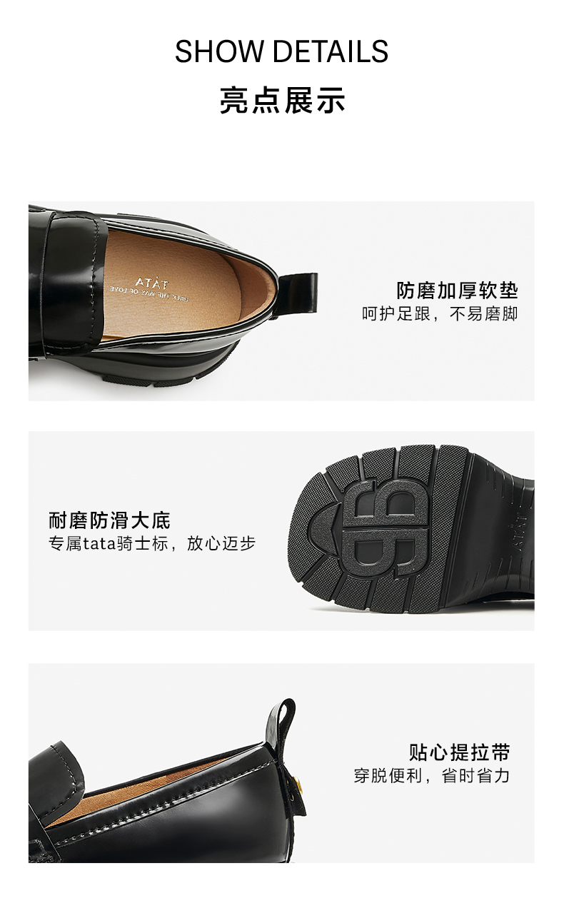 | 上市时间:2023年春季 | 鞋类流行款式:乐福鞋 | 鞋头款式:方头 | 跟高范围:高跟鞋(6-8CM) | 鞋面图案:纯色 |