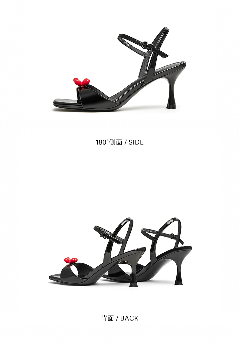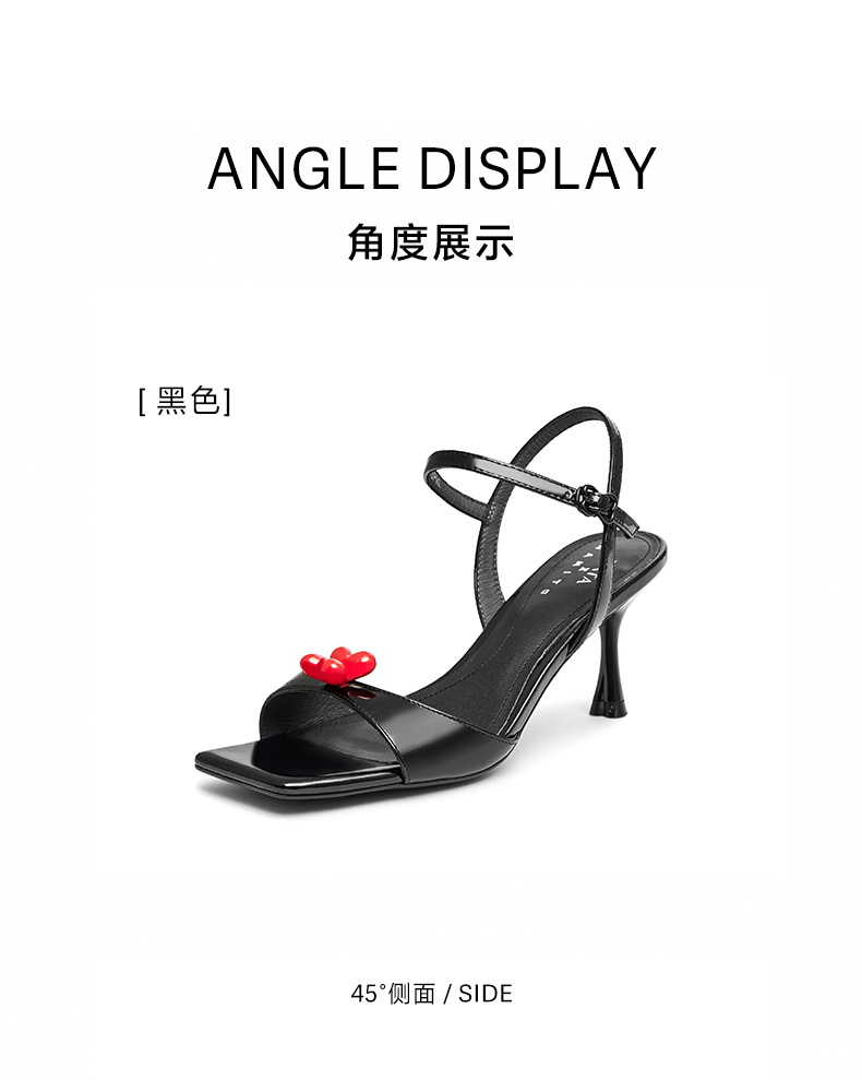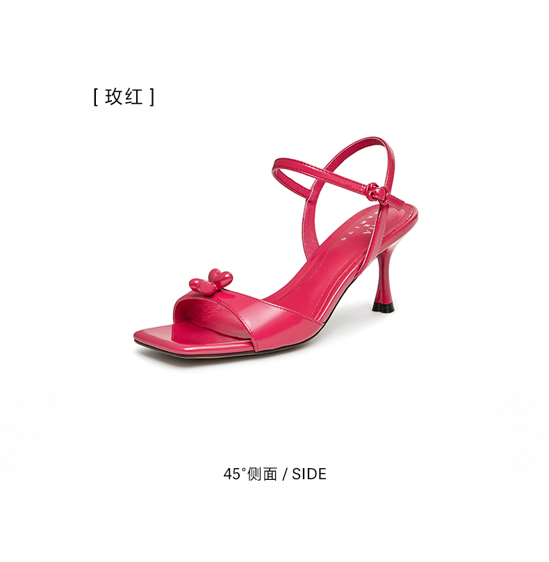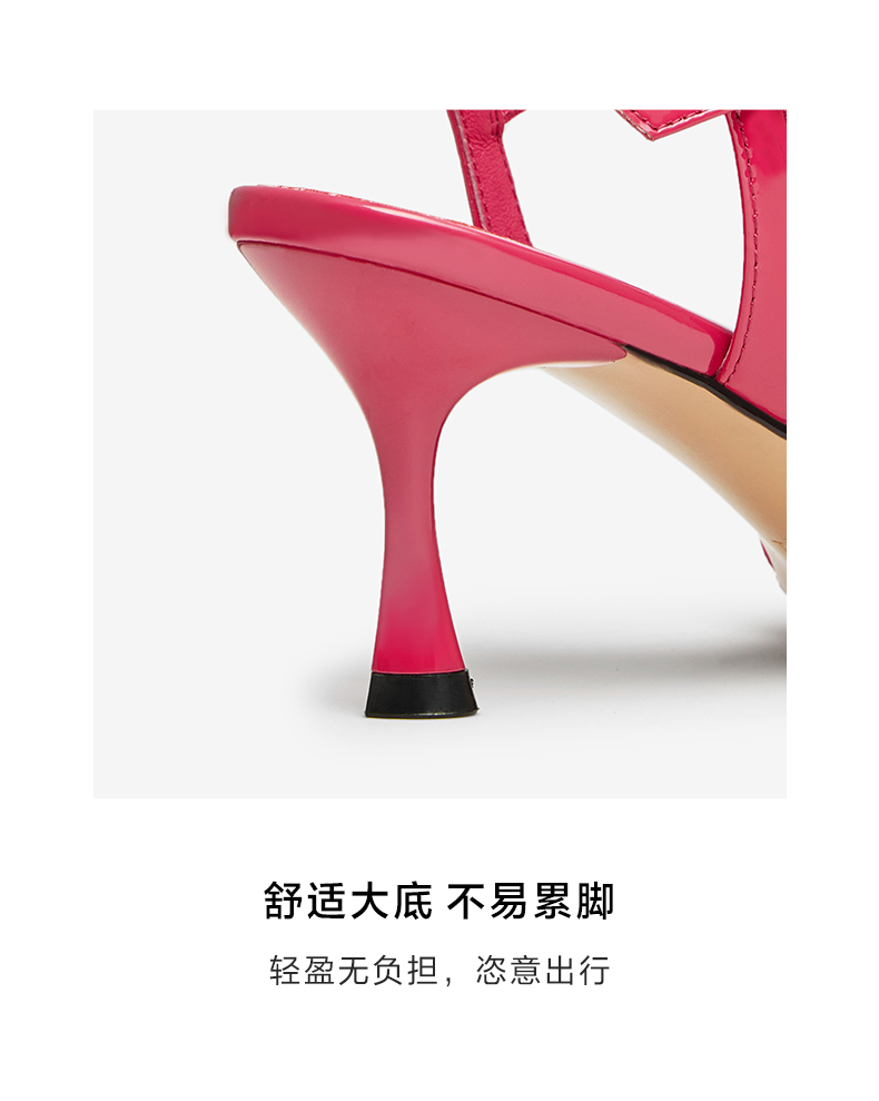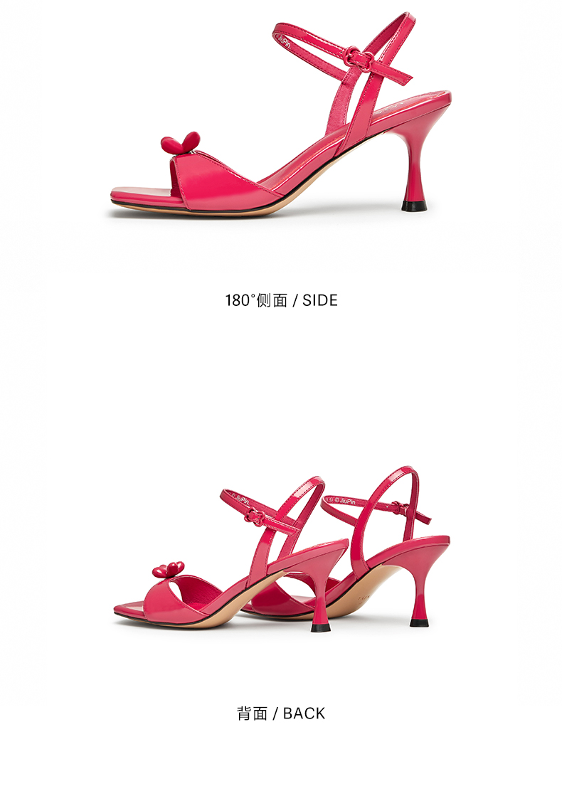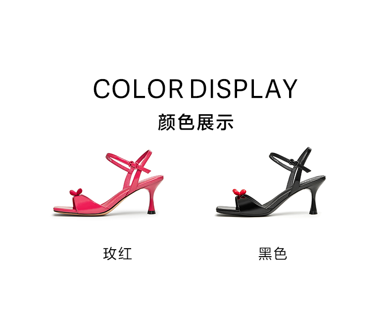 | 鞋头款式:露趾 | 鞋底材质:橡胶底 | 鞋面图案:纯色 | 鞋跟形状:细跟 | 鞋面材质:牛皮革 |