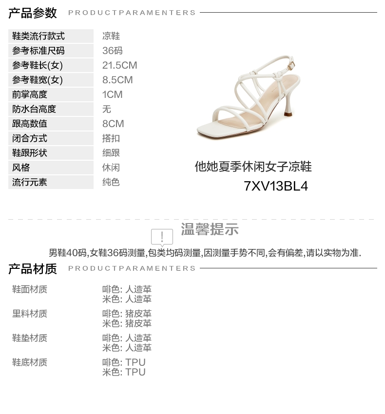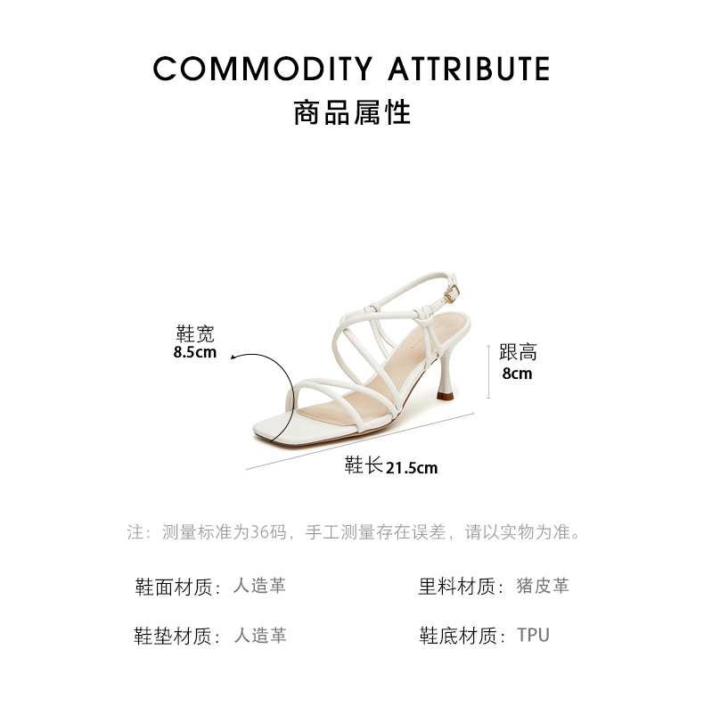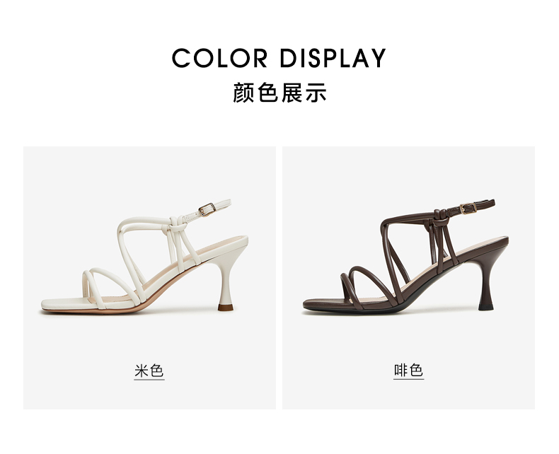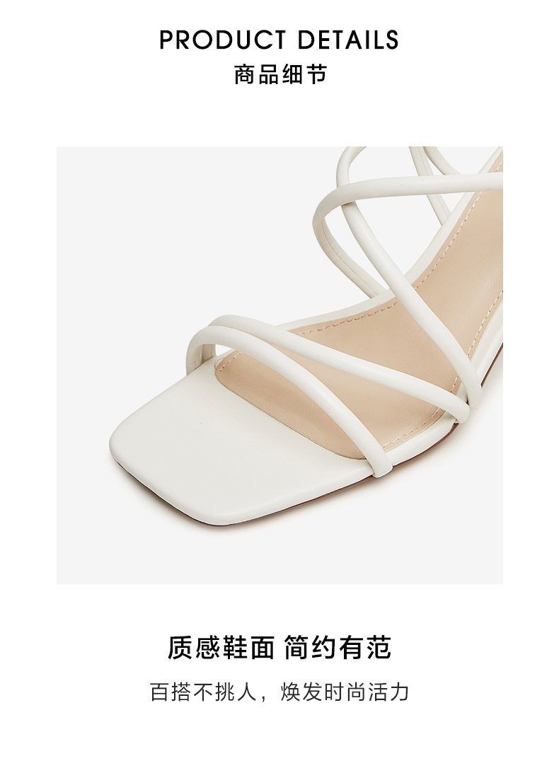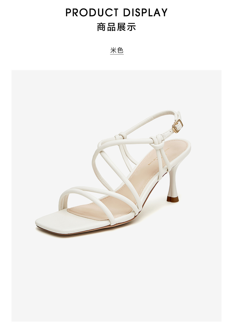 | 鞋头款式:露趾 | 执行标准:皮凉鞋GB/T22756-2017 | 跟高范围:高跟鞋(6-8CM) | 鞋面图案:纯色 | 鞋跟形状:细跟 |