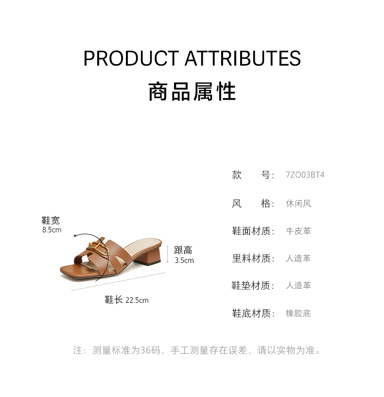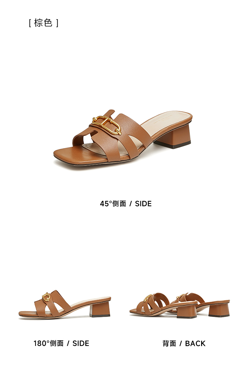 | 鞋头款式:露趾 | 鞋底材质:橡胶底 | 鞋面图案:纯色 | 鞋跟形状:方跟 | 鞋面材质:牛皮革 |