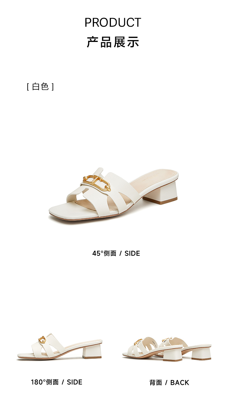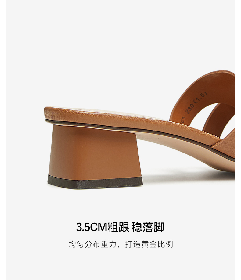 | 鞋头款式:露趾 | 鞋底材质:橡胶底 | 鞋面图案:纯色 | 鞋跟形状:方跟 | 鞋面材质:牛皮革 |