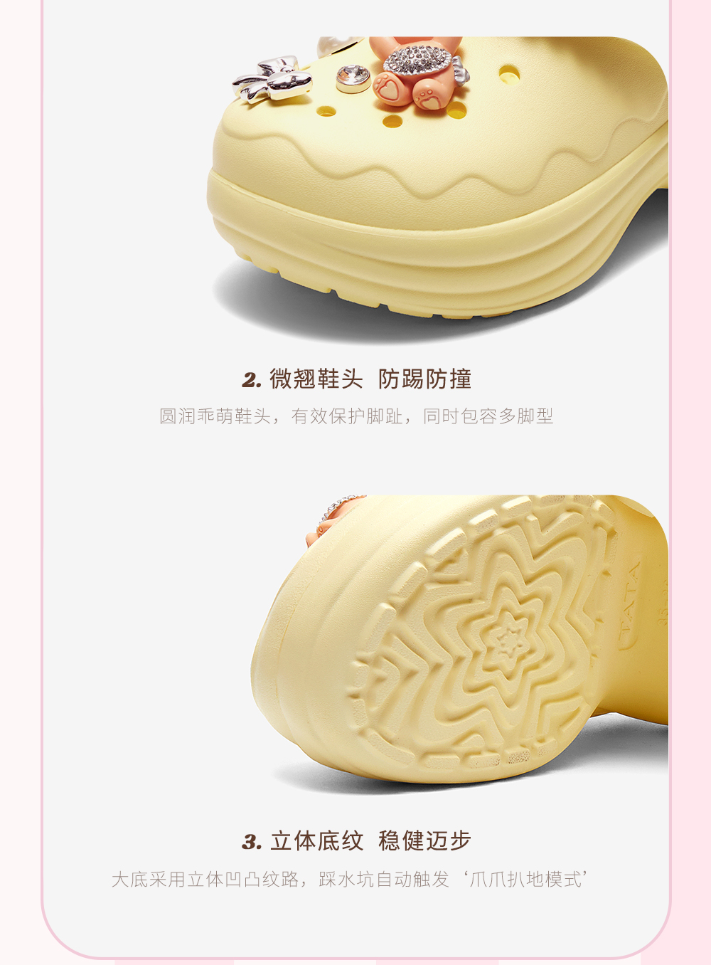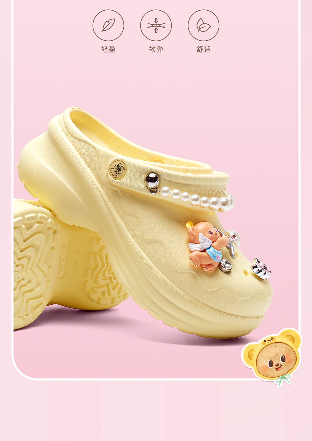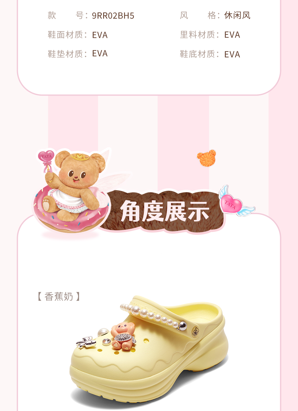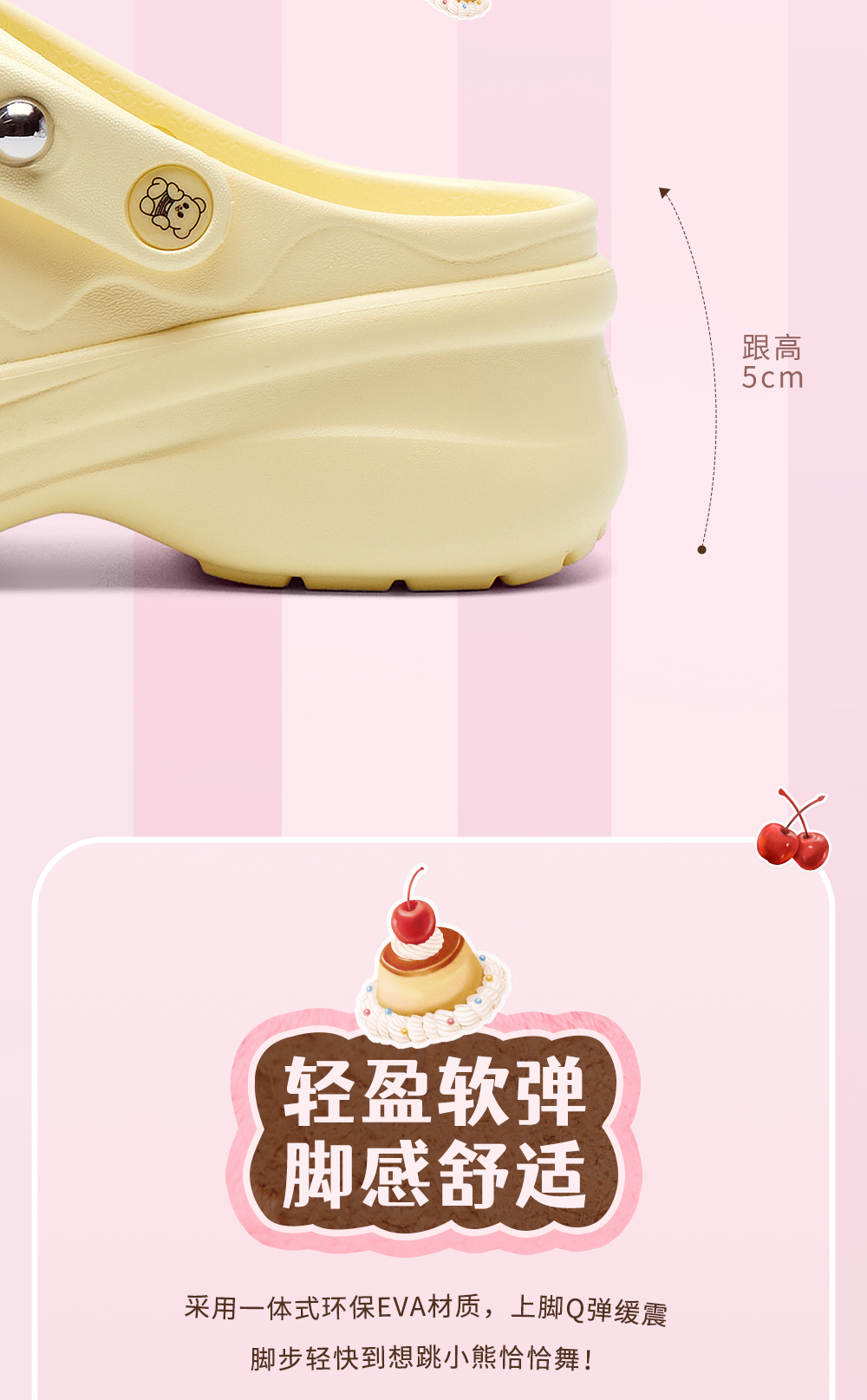 | 鞋头款式:圆头 | 鞋底材质:EVA | 鞋面图案:纯色 | 鞋跟形状:厚底 | 鞋面材质:EVA |