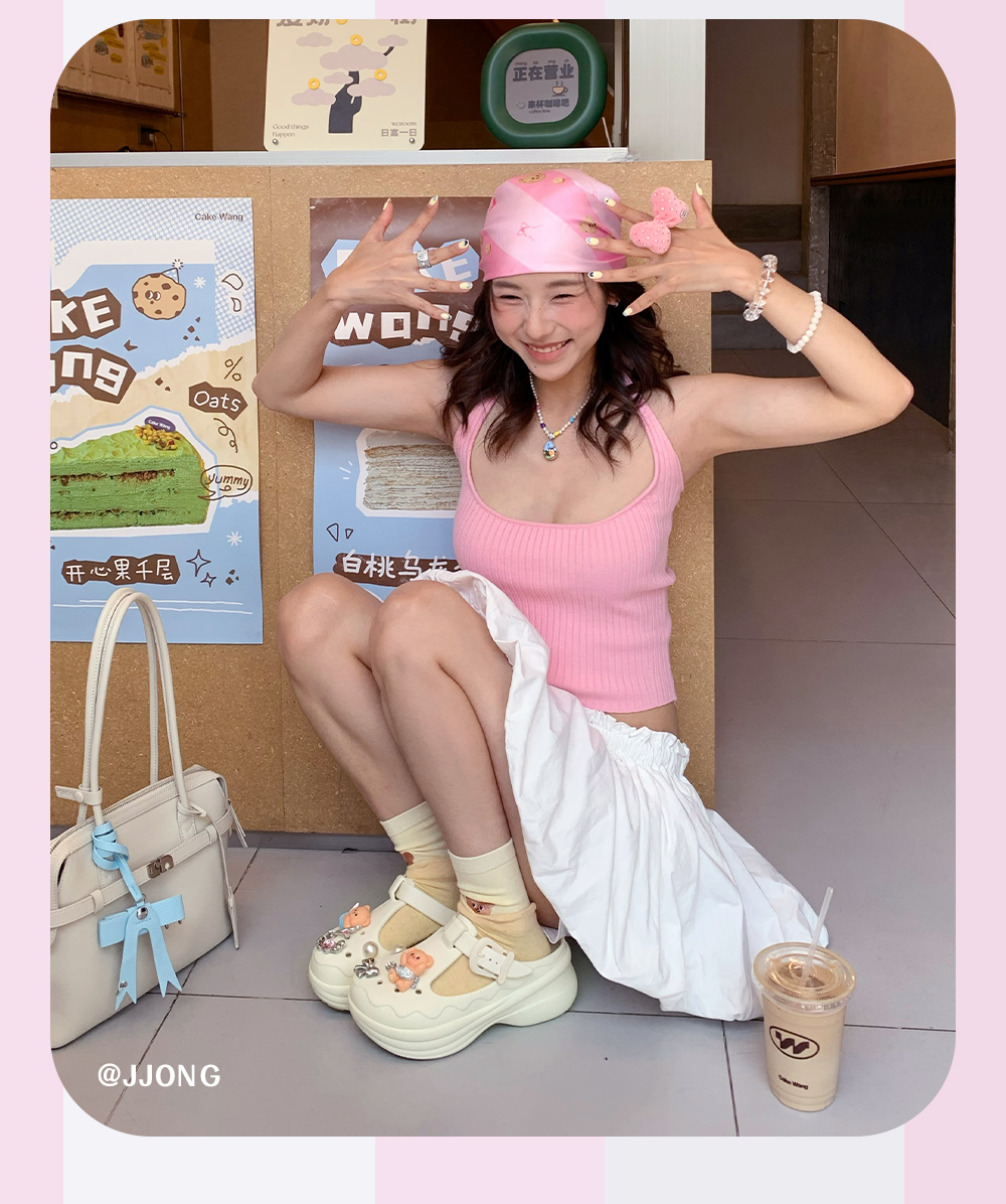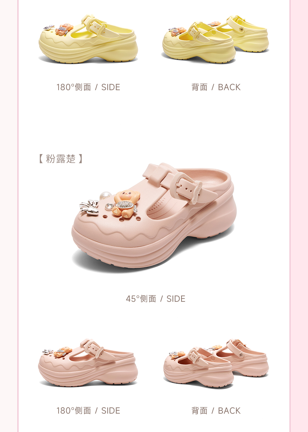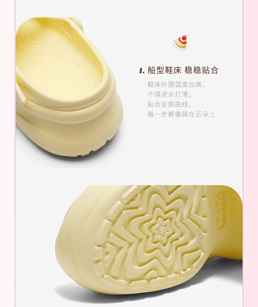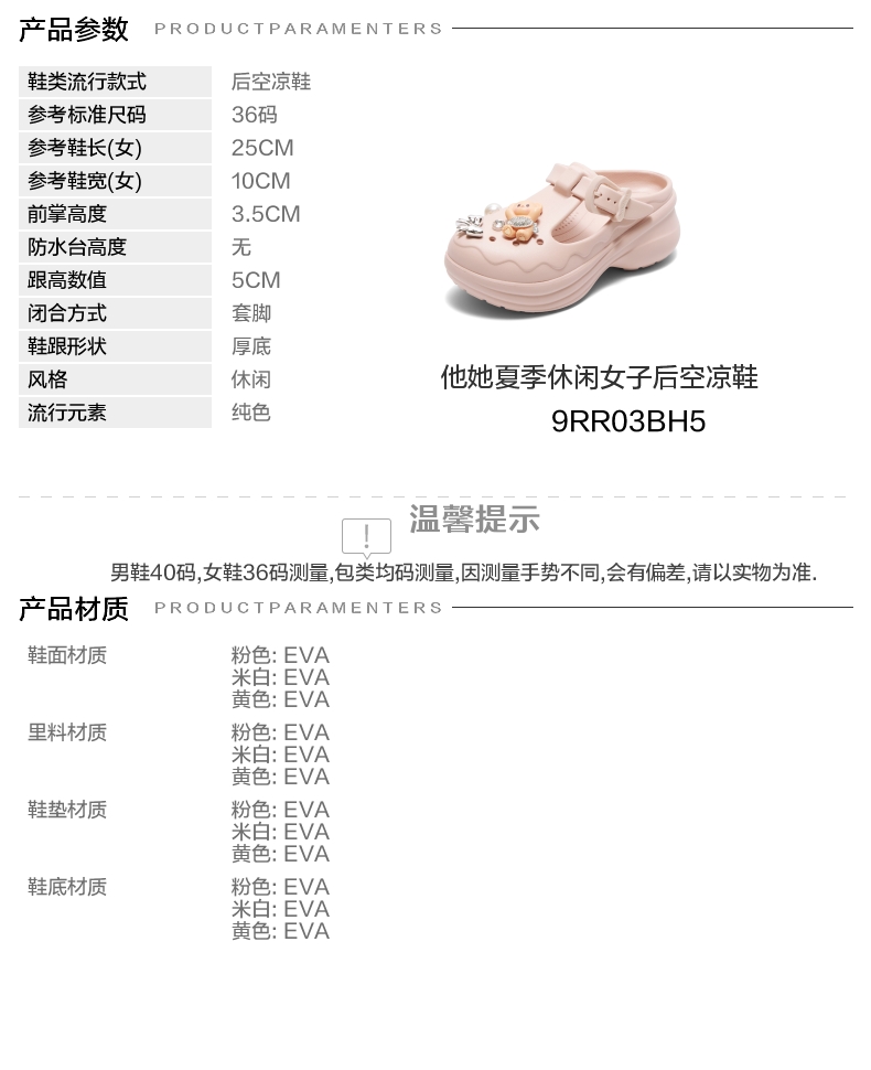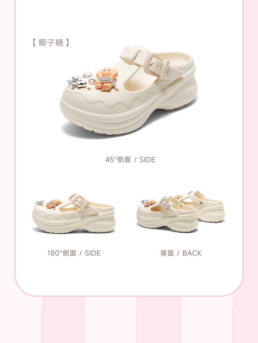 | 鞋头款式:圆头 | 鞋底材质:EVA | 鞋面图案:纯色 | 鞋跟形状:厚底 | 鞋面材质:EVA |