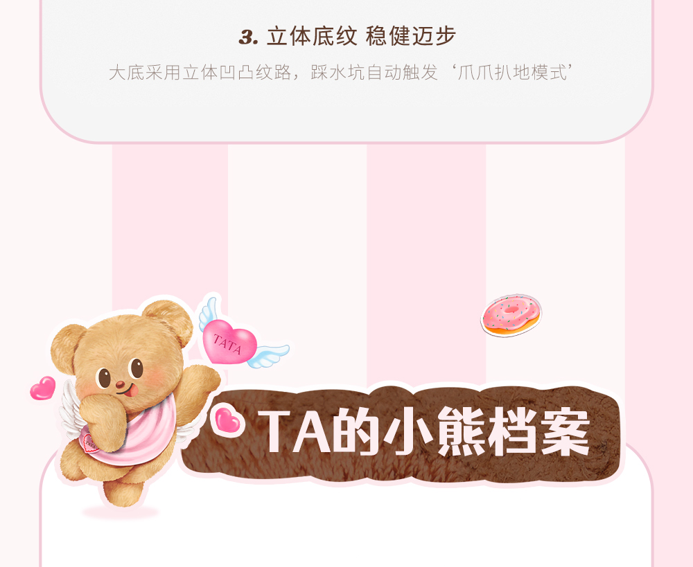 他她(Tata),品牌成立于2003年,致力为都市年轻人群提供时尚潮流、具有性价比的鞋履产品。十五年来“踏踏”的着地声,寓意都市白领元气满满的生活,如时尚“伴履”的TATA一直陪伴左右、伴随走出TATA的时尚步伐。2017年TATA美丽蜕变,TATA STAR元素的加入预示品牌将成为闪亮、前端的时尚鞋履品牌。