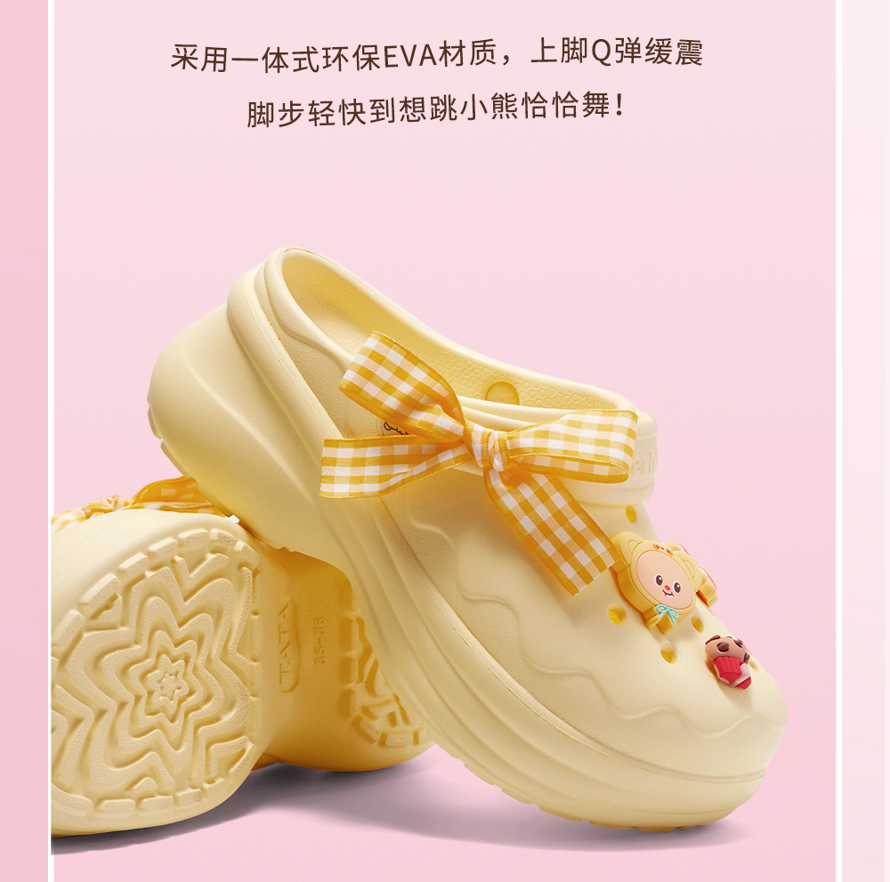 | 鞋头款式:圆头 | 鞋底材质:EVA | 鞋面图案:纯色 | 鞋跟形状:厚底 | 鞋面材质:EVA |