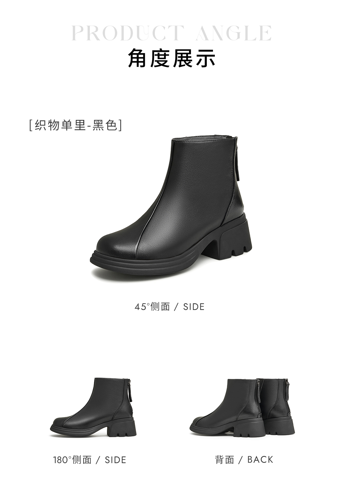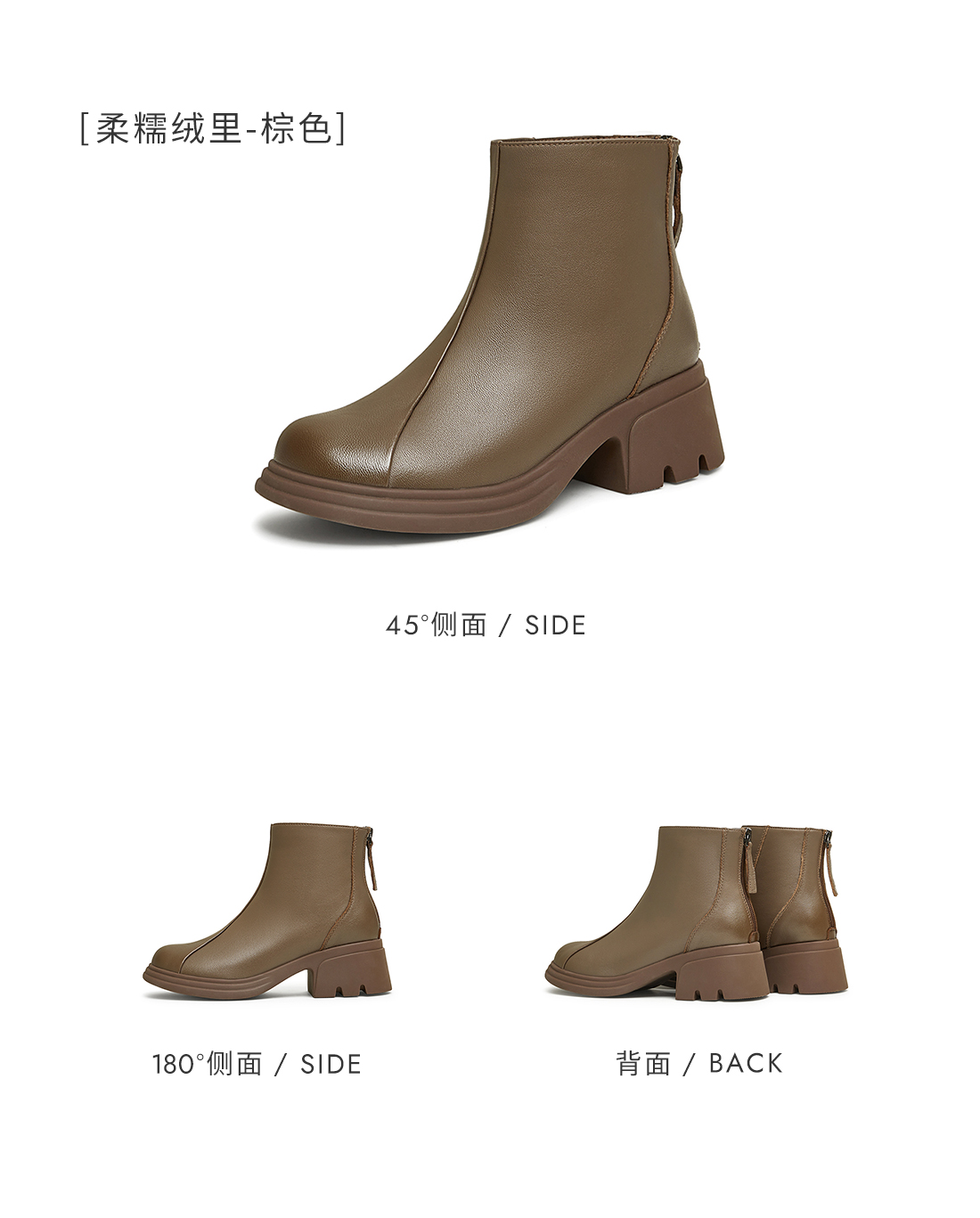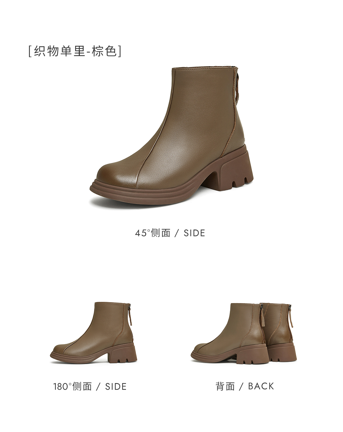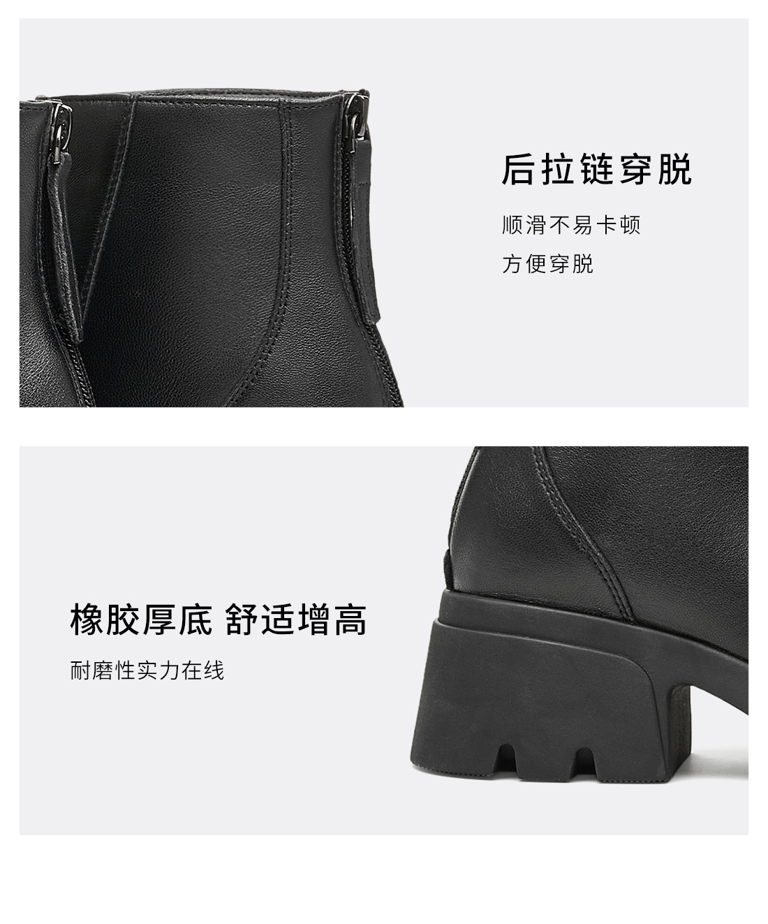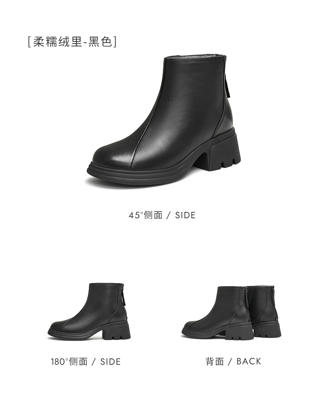 | 鞋底材质:橡胶底 | 靴筒内里材质:PU革织物面料 | 内增高:无 | 鞋面材质:羊皮革 | 闭合方式:后拉链 |
