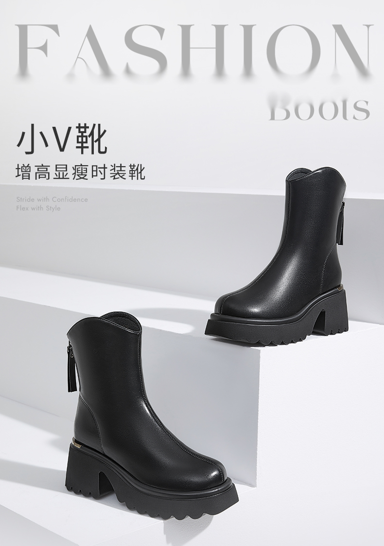 | 鞋底材质:PU | 靴筒内里材质:人造短毛绒 | 内增高:无 | 鞋面材质:人造革 | 闭合方式:后拉链 |