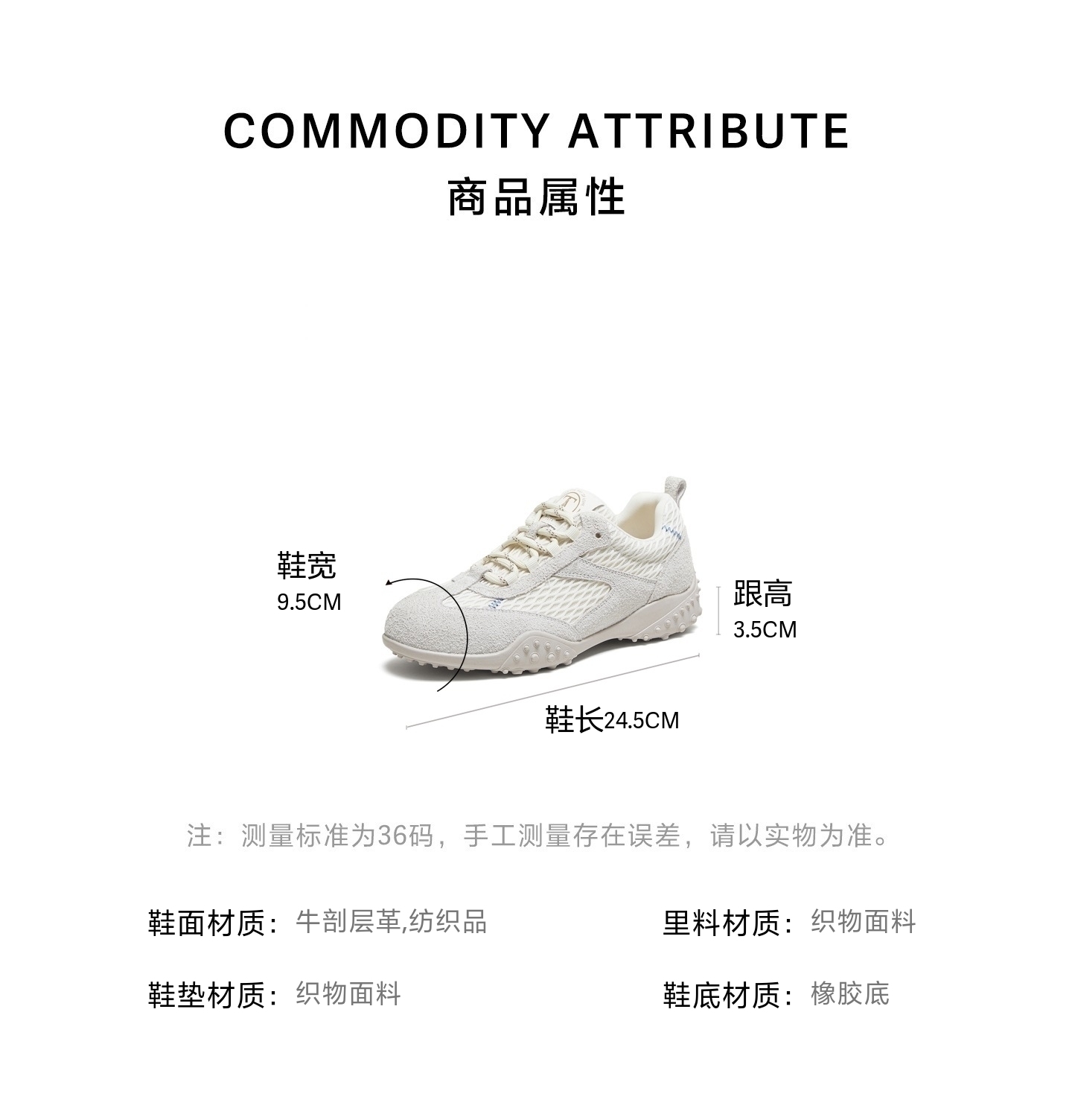 | 鞋帮:低帮 | 鞋底材质:橡胶底 | 内增高:无 | 鞋面材质:纺织品牛剖层革 | 闭合方式:系带 |