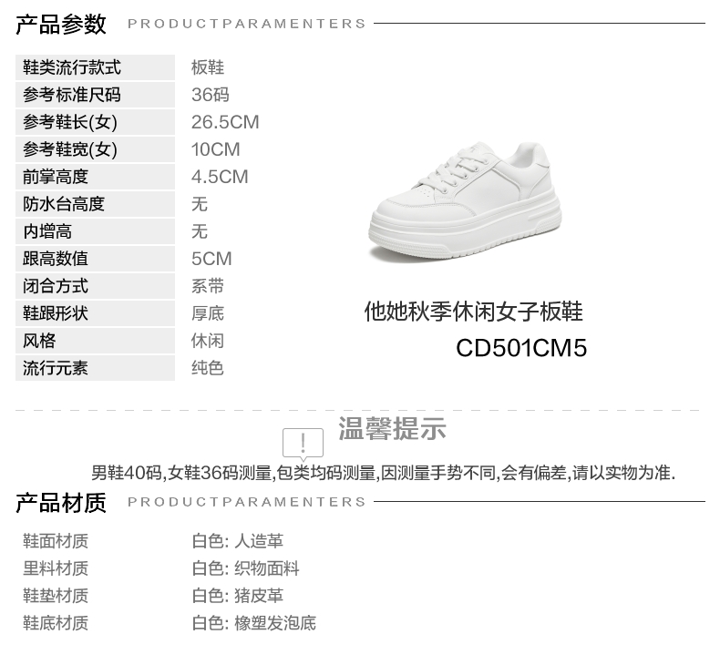 | 鞋跟形状:厚底 | 参考鞋长(女):26.5CM | 流行元素:纯色 | 参考鞋宽(女):10CM | 风格:休闲 |