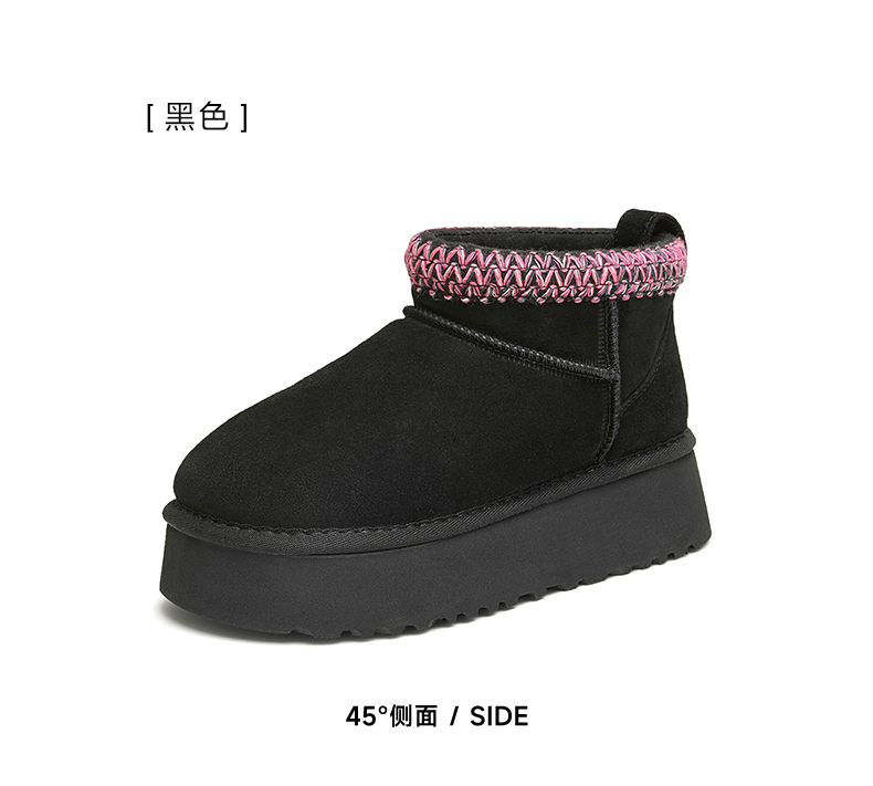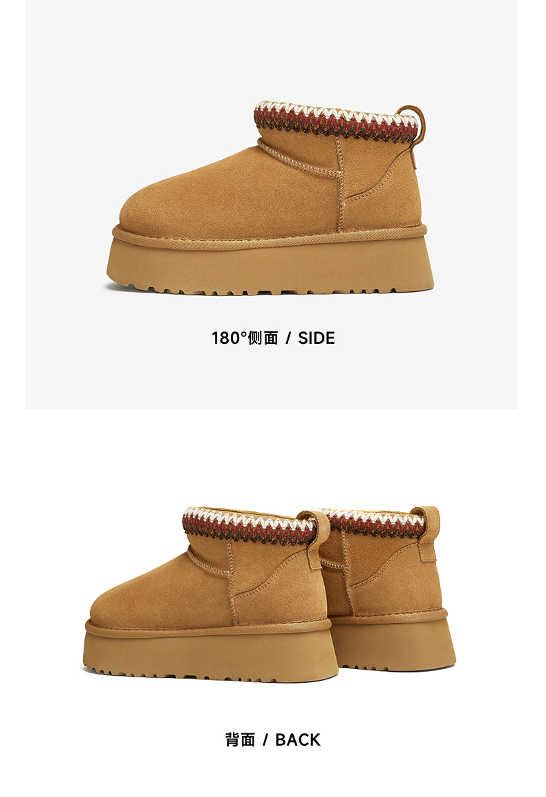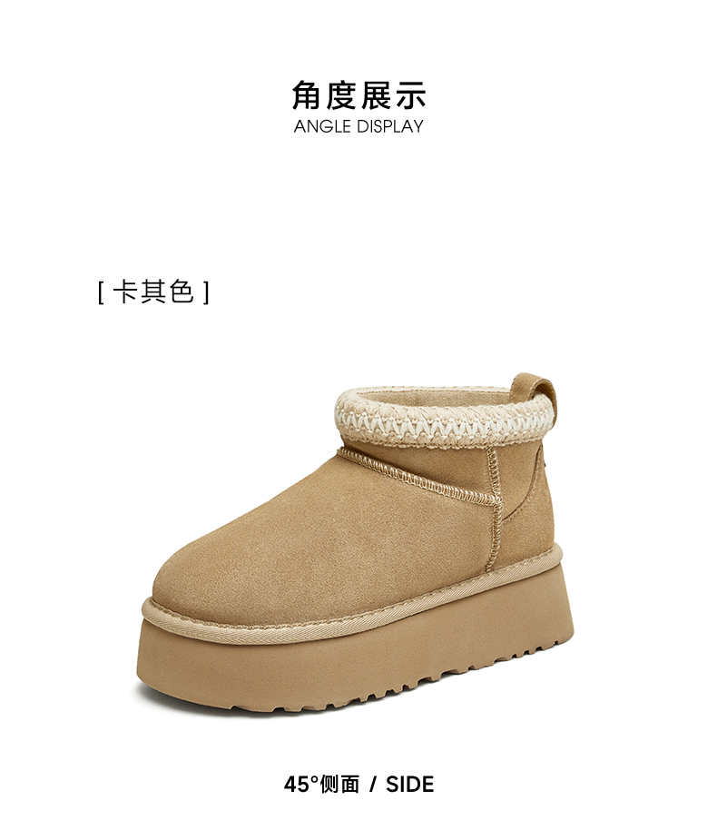 | 性别:女子 | 靴筒筒面材质:牛剖层革 | 里料材质:人造短毛绒 | 制鞋工艺:胶贴皮鞋 | 款式季节:冬季 |