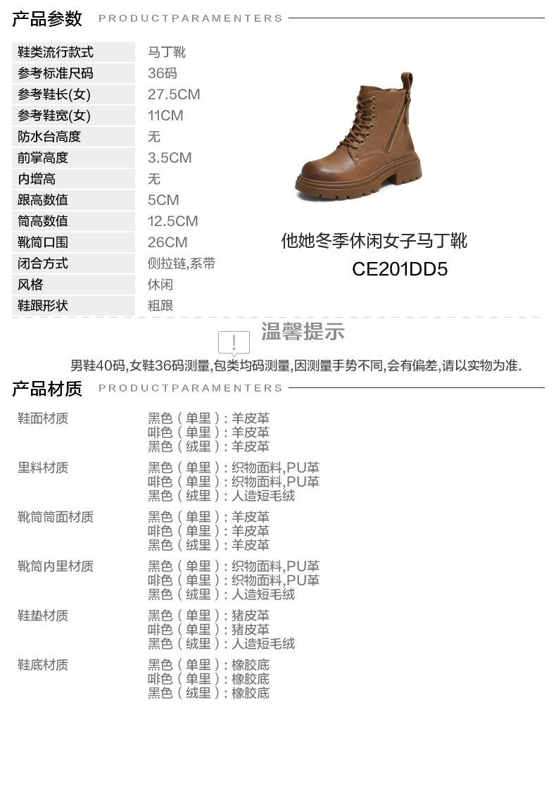 | 帮面材质:羊皮 | 配跟:有 | 靴筒口围:26CM | 上市时间:2025年冬季 | 鞋类流行款式:马丁靴 |