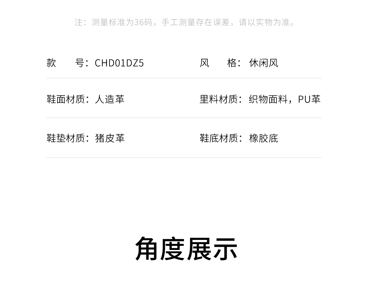 | 鞋面图案:纯色 | 鞋跟形状:粗跟 | 参考鞋长(女):26.5CM | 流行元素:纯色 | 参考鞋宽(女):10.5CM |