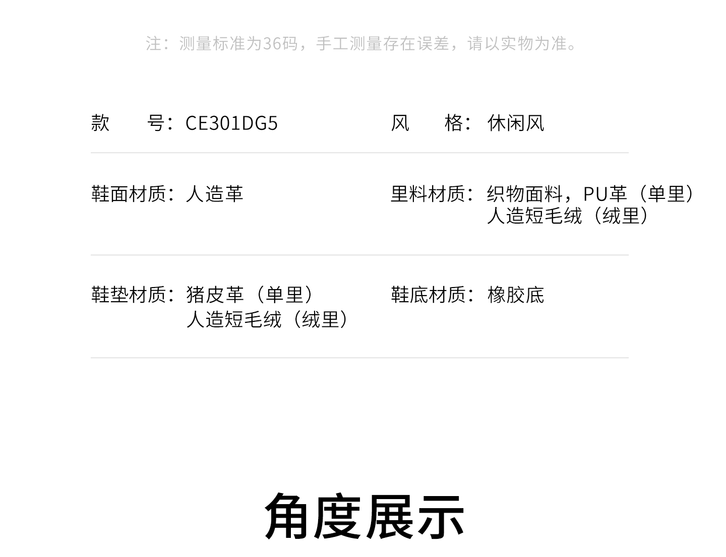 | 鞋面图案:纯色 | 鞋跟形状:粗跟 | 参考鞋长(女):26.5CM | 流行元素:纯色 | 参考鞋宽(女):10.5CM |