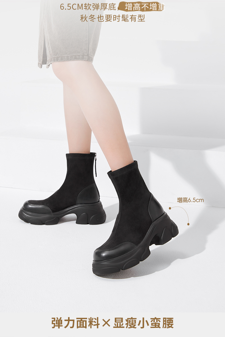 | 风格:休闲 | 色系:黑色 | 跟高数值:6.5CM | 性别:女子 | 筒高数值:15CM |