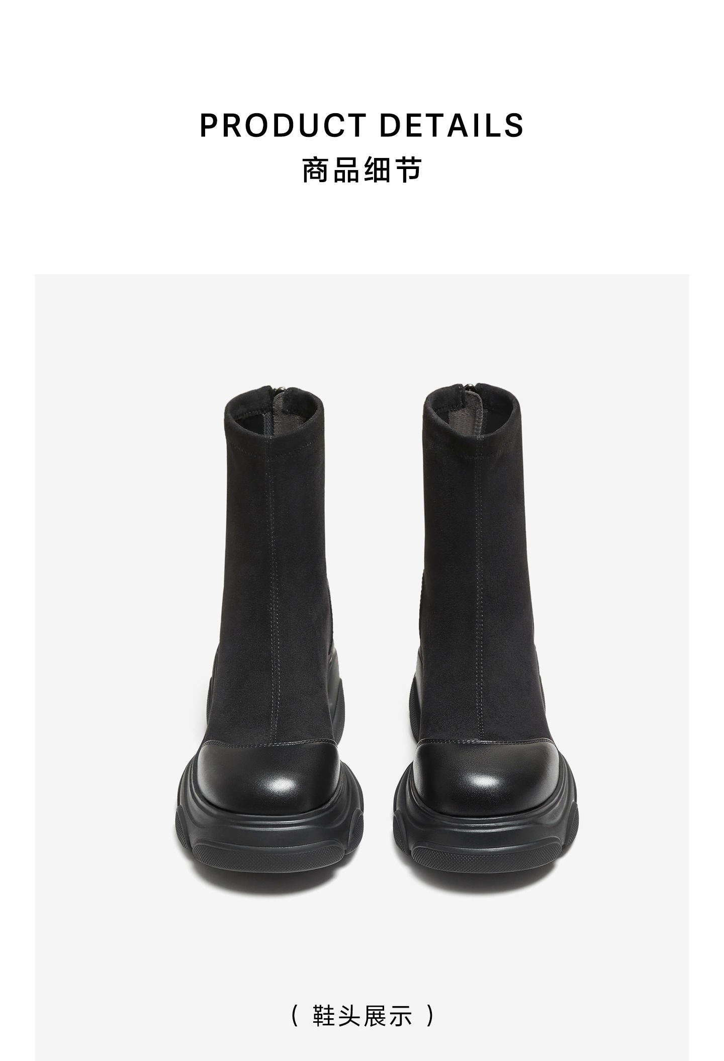 | 配跟:无 | 靴筒口围:25CM | 上市时间:2025年冬季 | 鞋类流行款式:弹力靴 | 鞋头款式:圆头 |