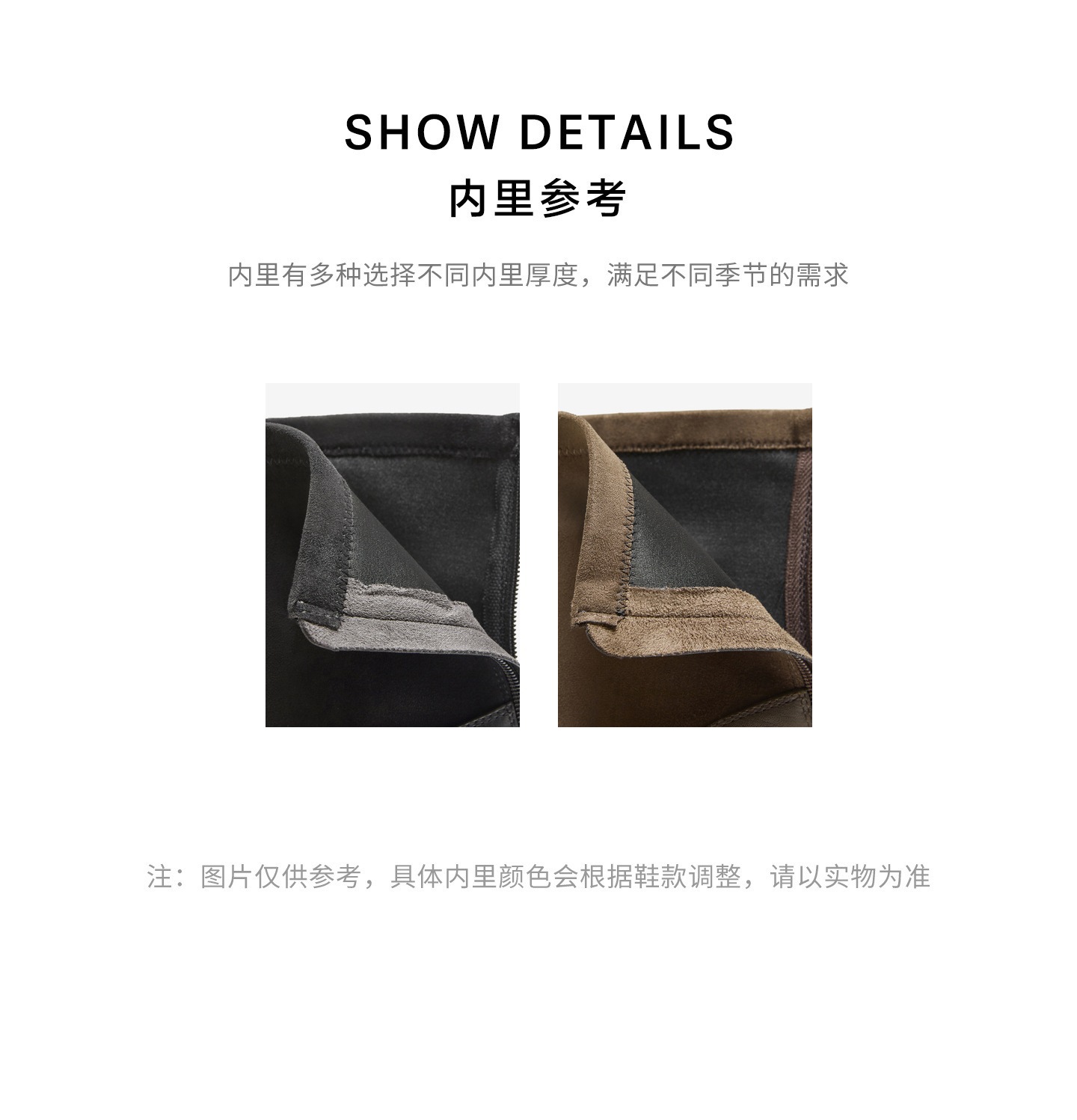 | 靴筒筒面材质:牛皮革织物 | 里料材质:织物面料PU革 | 制鞋工艺:胶贴皮鞋 | 鞋垫材质:猪皮革 | 款式季节:冬季 |