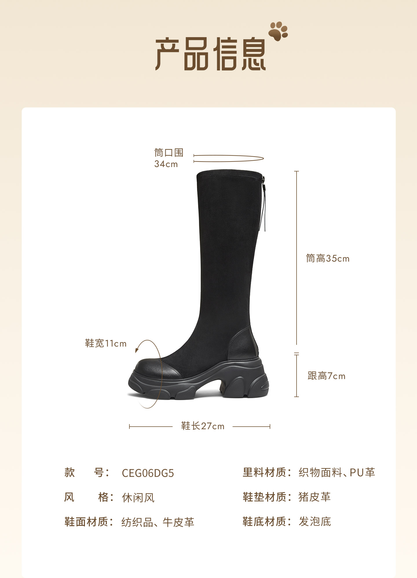 • TATA/他她2025冬时尚休闲女靴百搭弹力瘦瘦靴新款CEG06DG5