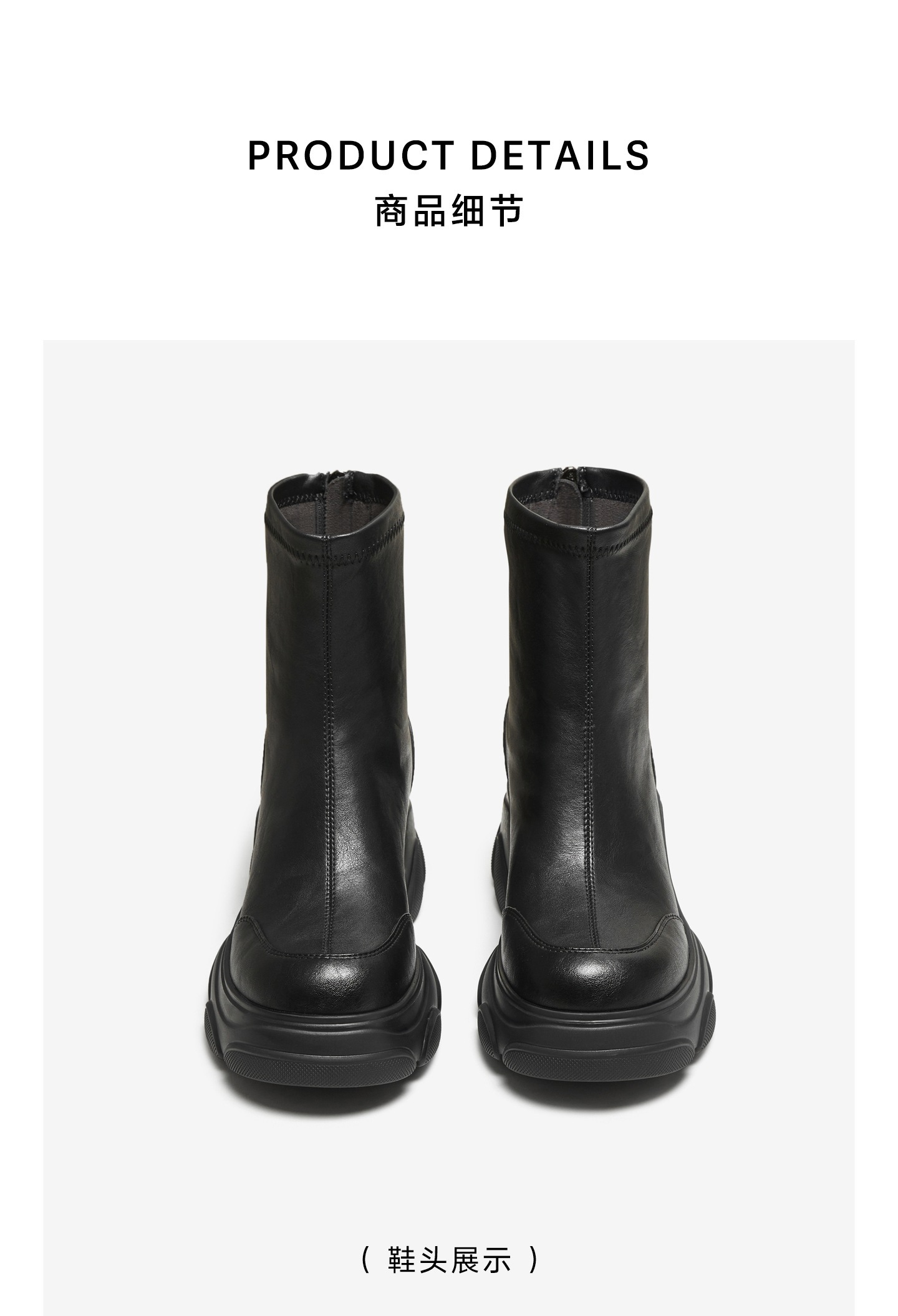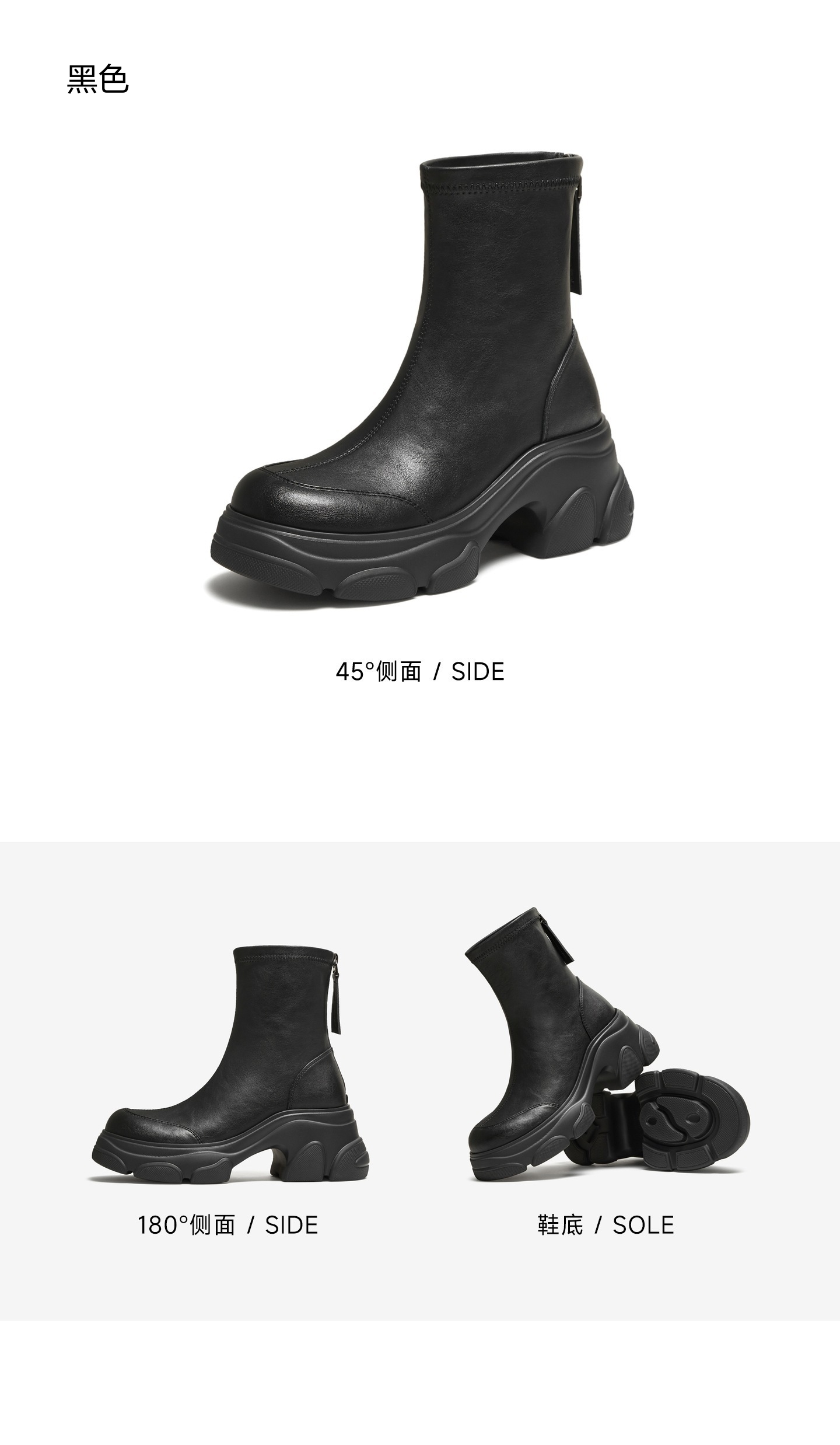 | 鞋底材质:发泡底 | 靴筒内里材质:织物面料PU革 | 内增高:无 | 鞋面材质:人造革 | 闭合方式:后拉链 |