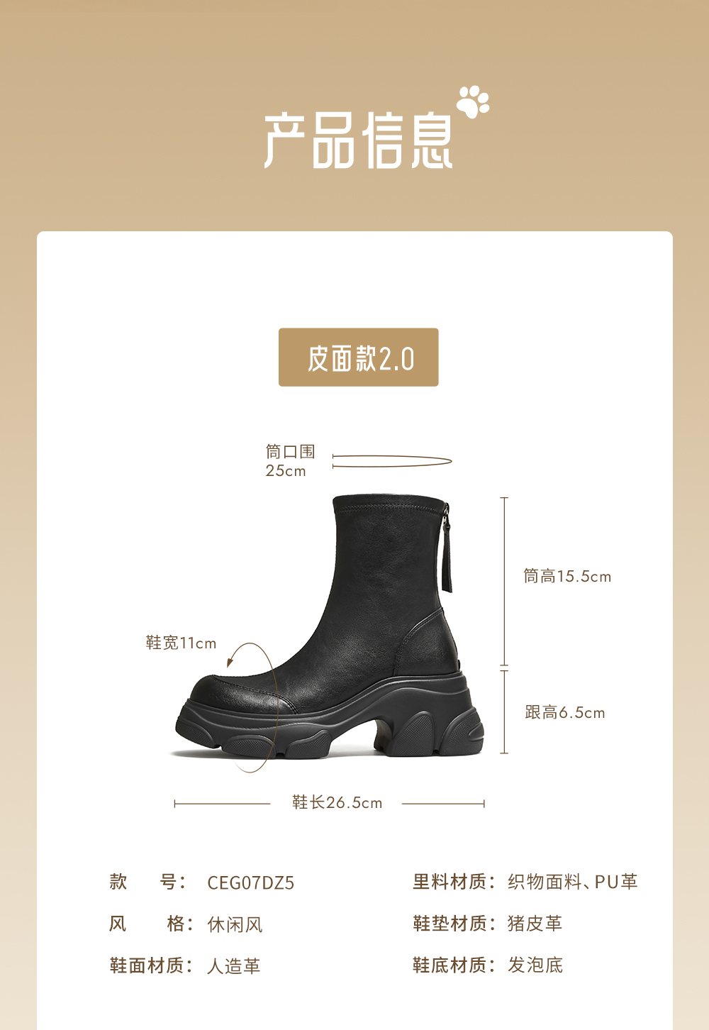 | 配跟:无 | 靴筒口围:25CM | 上市时间:2025年冬季 | 鞋类流行款式:时装靴 | 鞋头款式:圆头 |