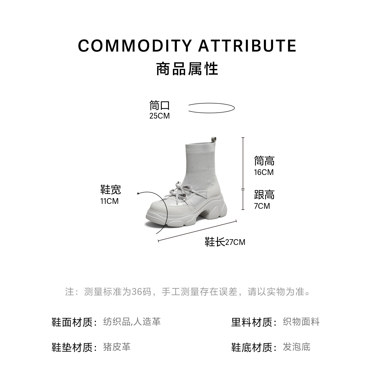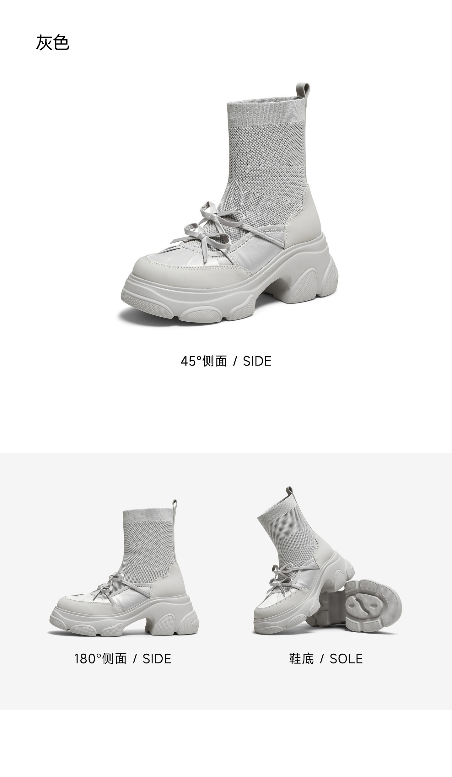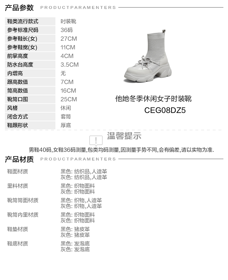 | 风格:休闲 | 色系:灰色 | 跟高数值:7CM | 性别:女子 | 筒高数值:16CM |