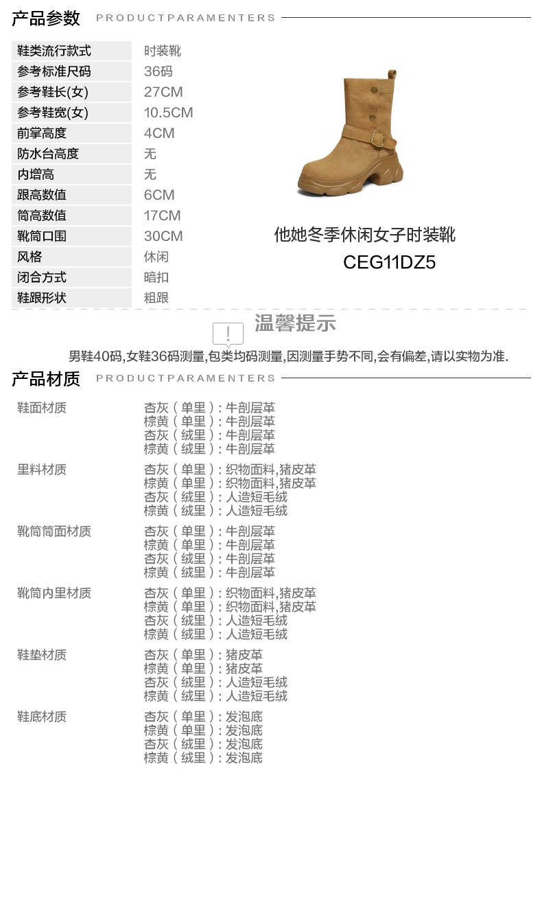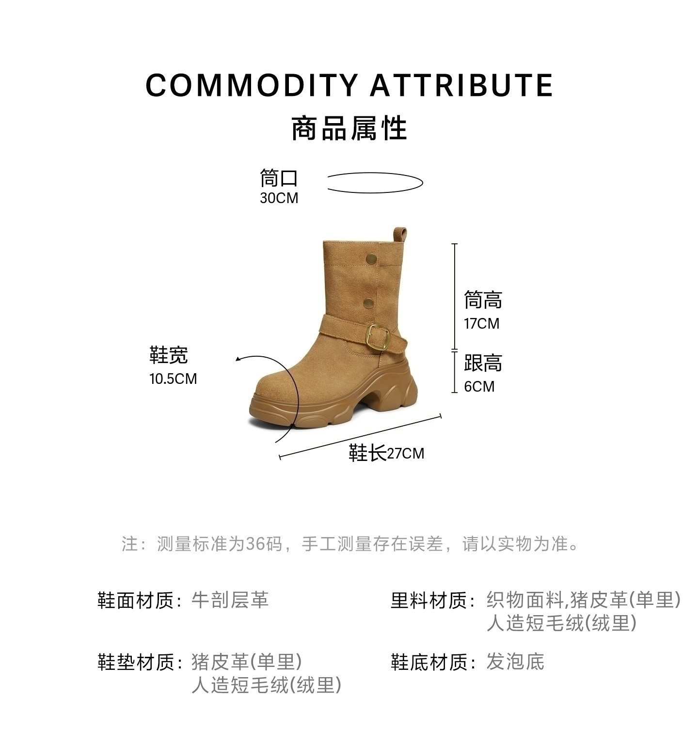 | 配跟:有 | 靴筒口围:30CM | 上市时间:2025年冬季 | 鞋类流行款式:时装靴 | 鞋头款式:圆头 |