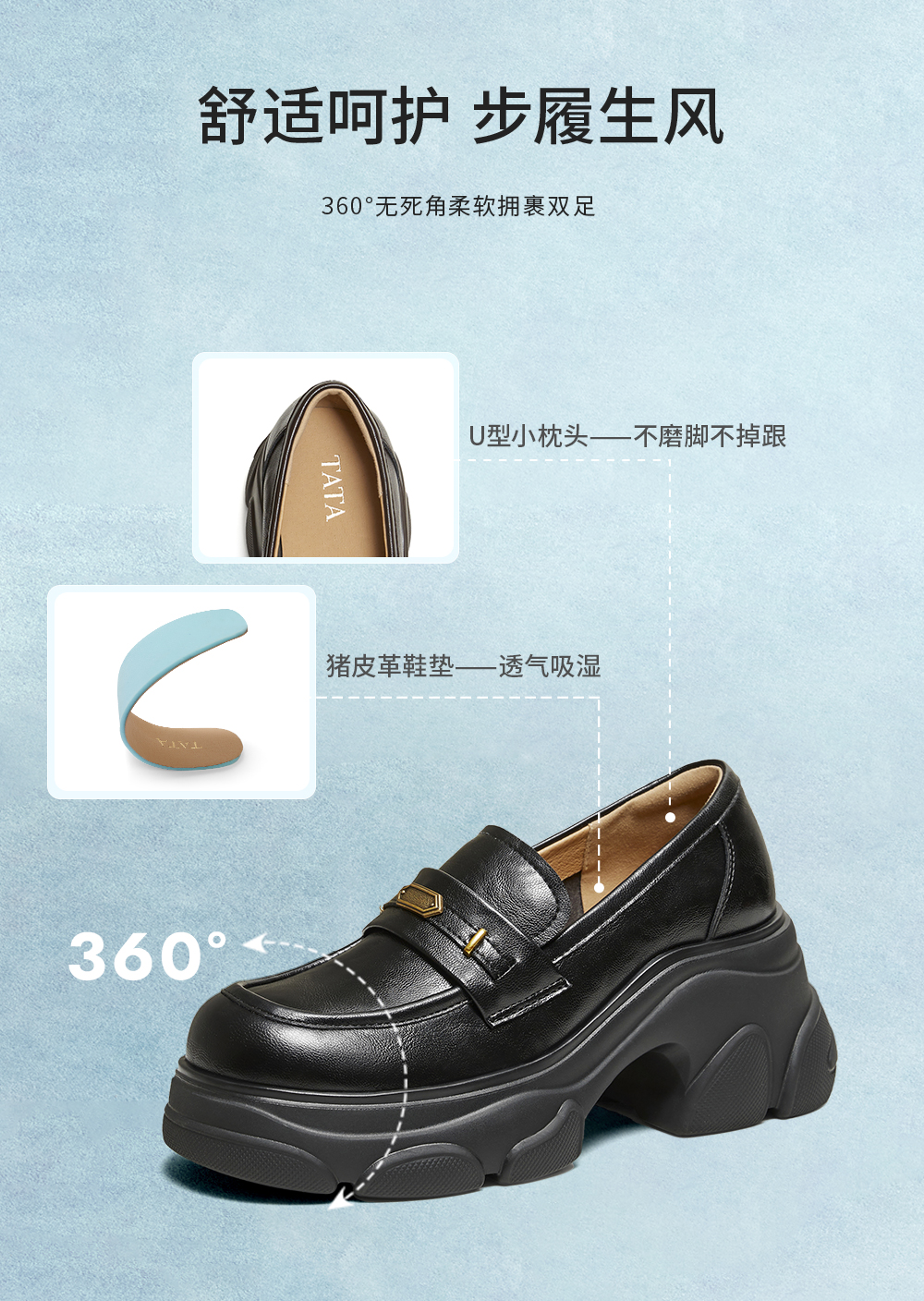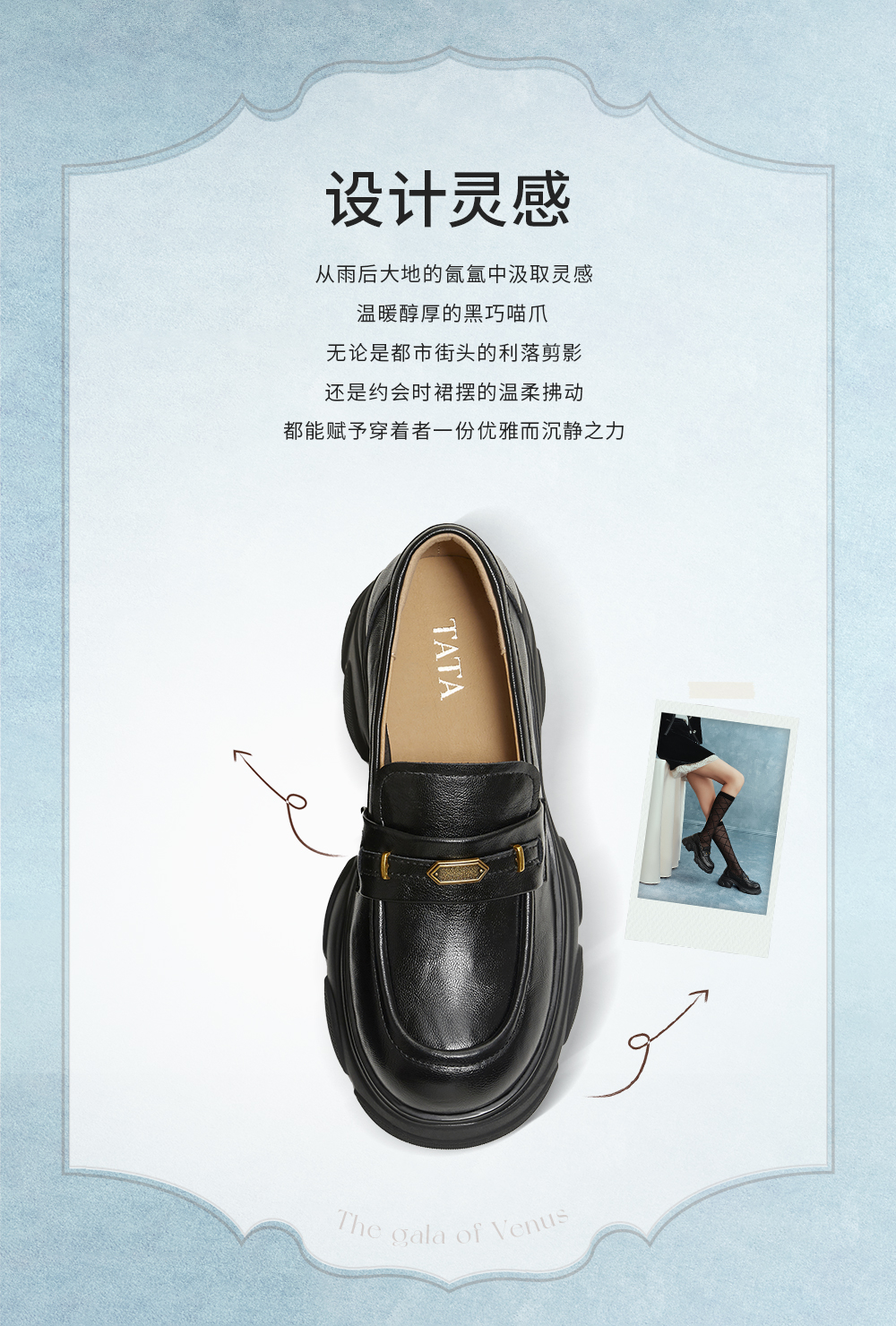 他她(Tata),品牌成立于2003年,致力为都市年轻人群提供时尚潮流、具有性价比的鞋履产品。十五年来“踏踏”的着地声,寓意都市白领元气满满的生活,如时尚“伴履”的TATA一直陪伴左右、伴随走出TATA的时尚步伐。2017年TATA美丽蜕变,TATA STAR元素的加入预示品牌将成为闪亮、前端的时尚鞋履品牌。