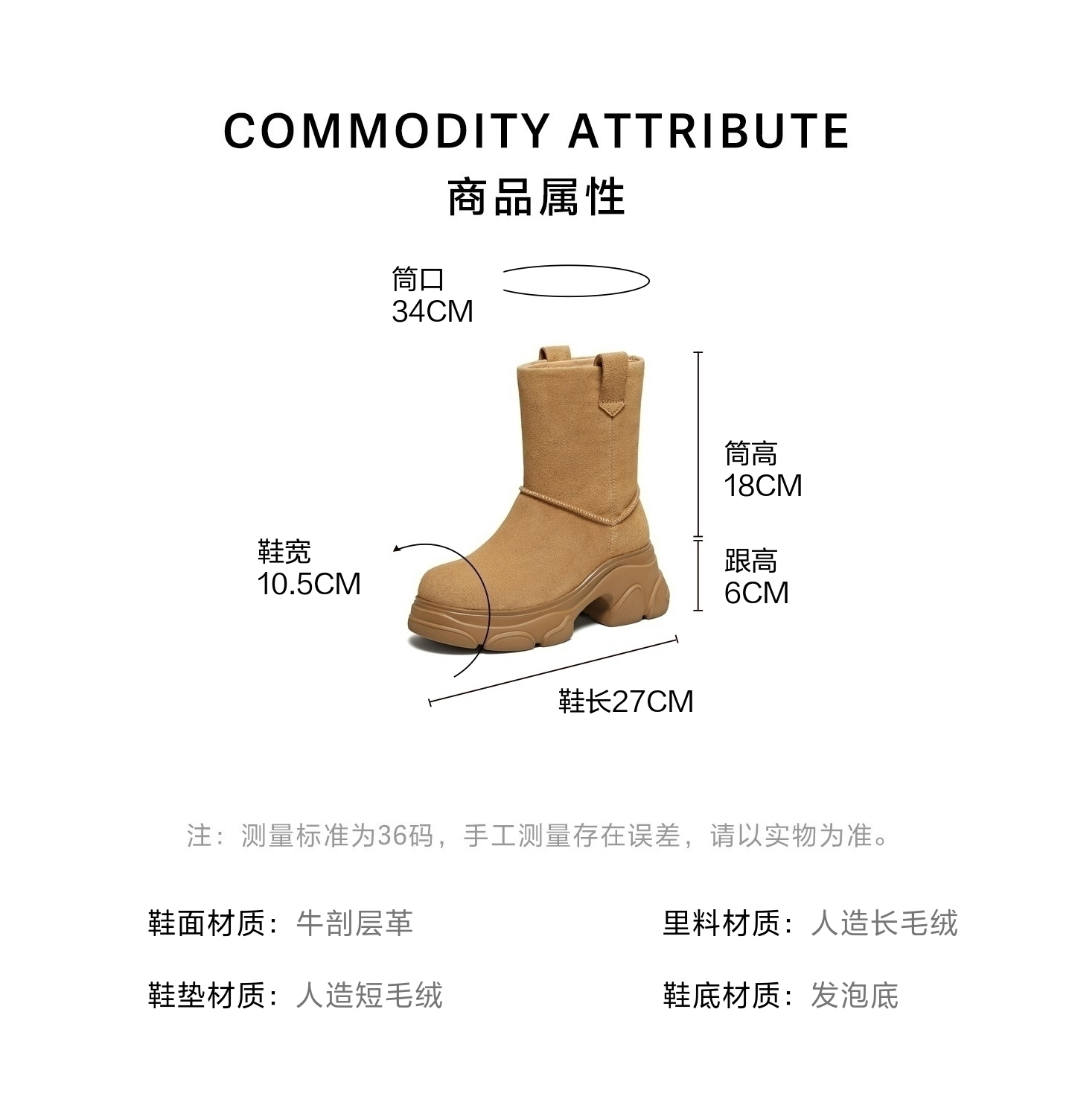 | 配跟:有 | 靴筒口围:34CM | 上市时间:2025年冬季 | 鞋类流行款式:中靴 | 鞋头款式:圆头 |