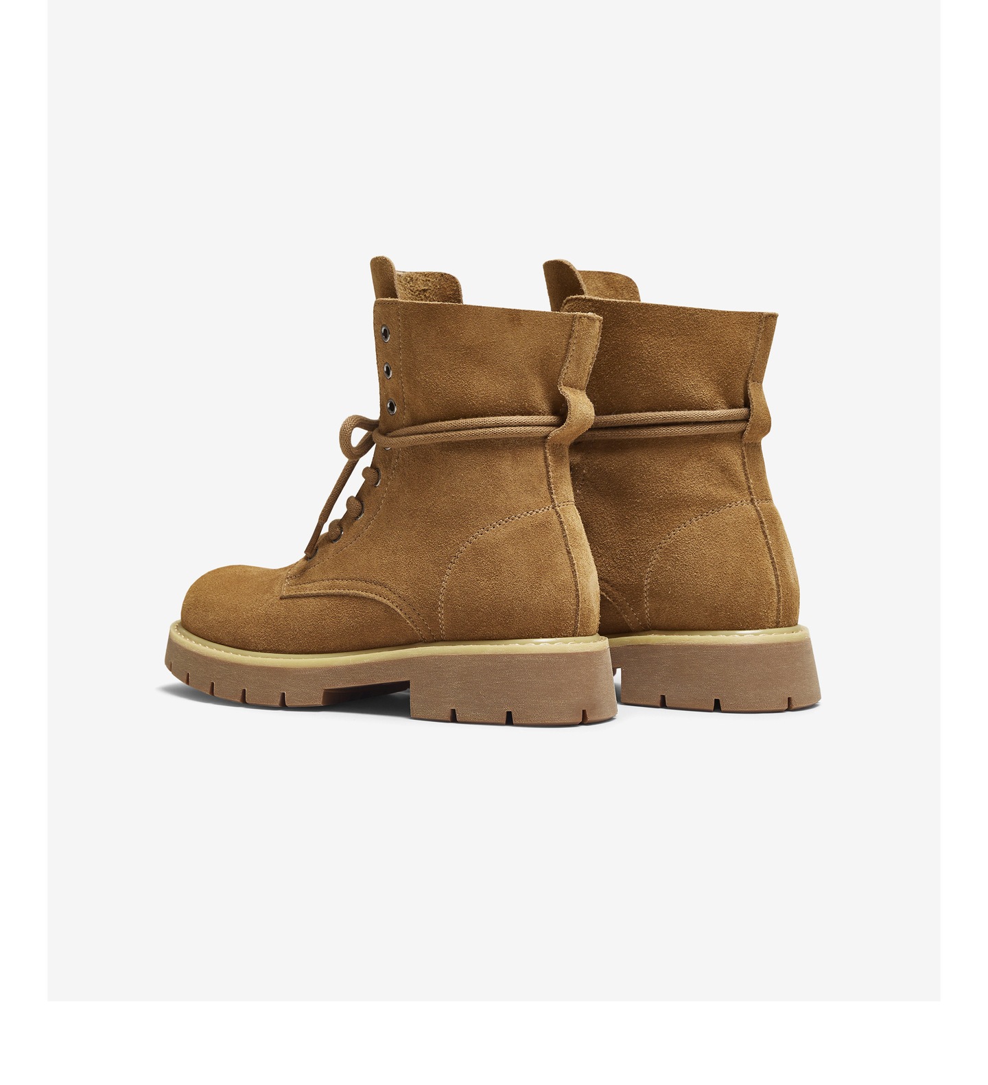 | 鞋底材质:橡胶底 | 靴筒内里材质:织物面料 | 内增高:无 | 鞋面材质:牛剖层革 | 闭合方式:系带 |