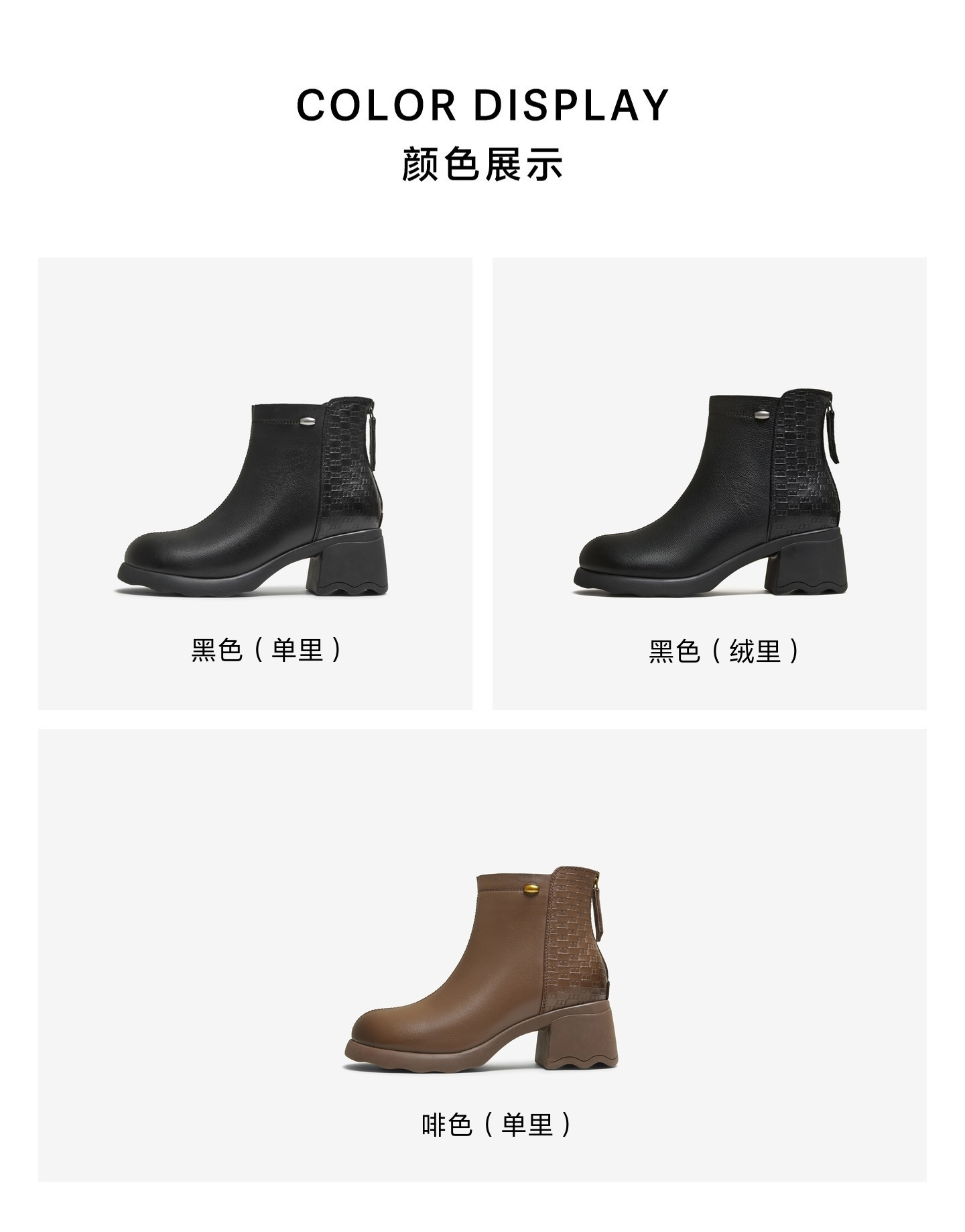| 款式季节:冬季 | 前掌高度:3CM | 皮质特征:软面皮 | 防水台高度:无 |