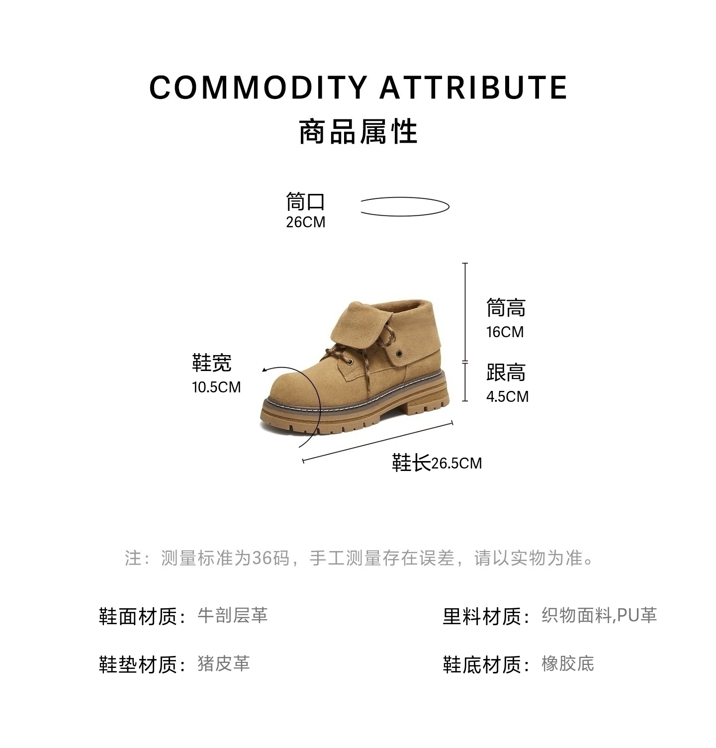 | 帮面材质:牛剖层革 | 配跟:有 | 靴筒口围:26CM | 上市时间:2025年冬季 | 鞋类流行款式:工装靴 |
