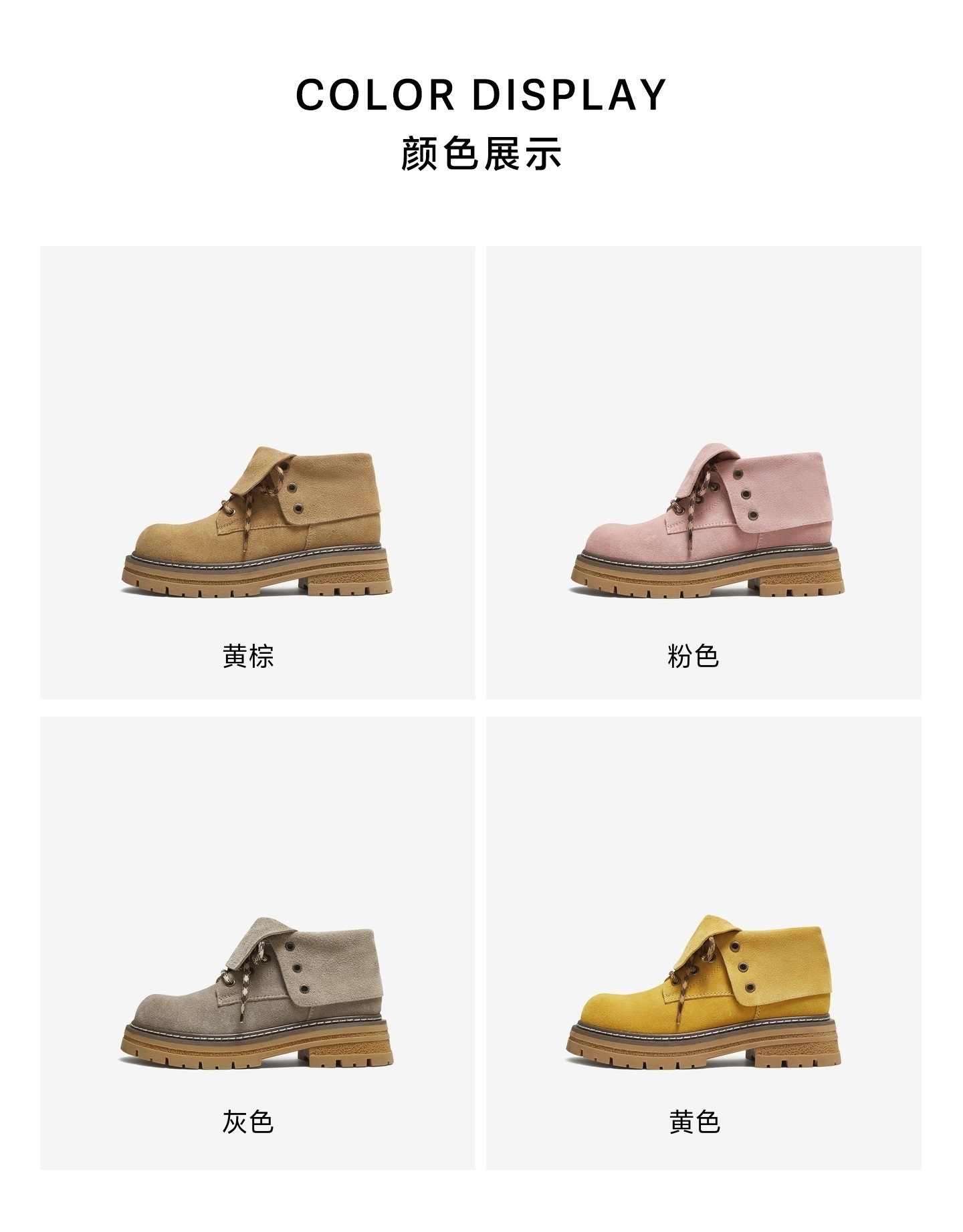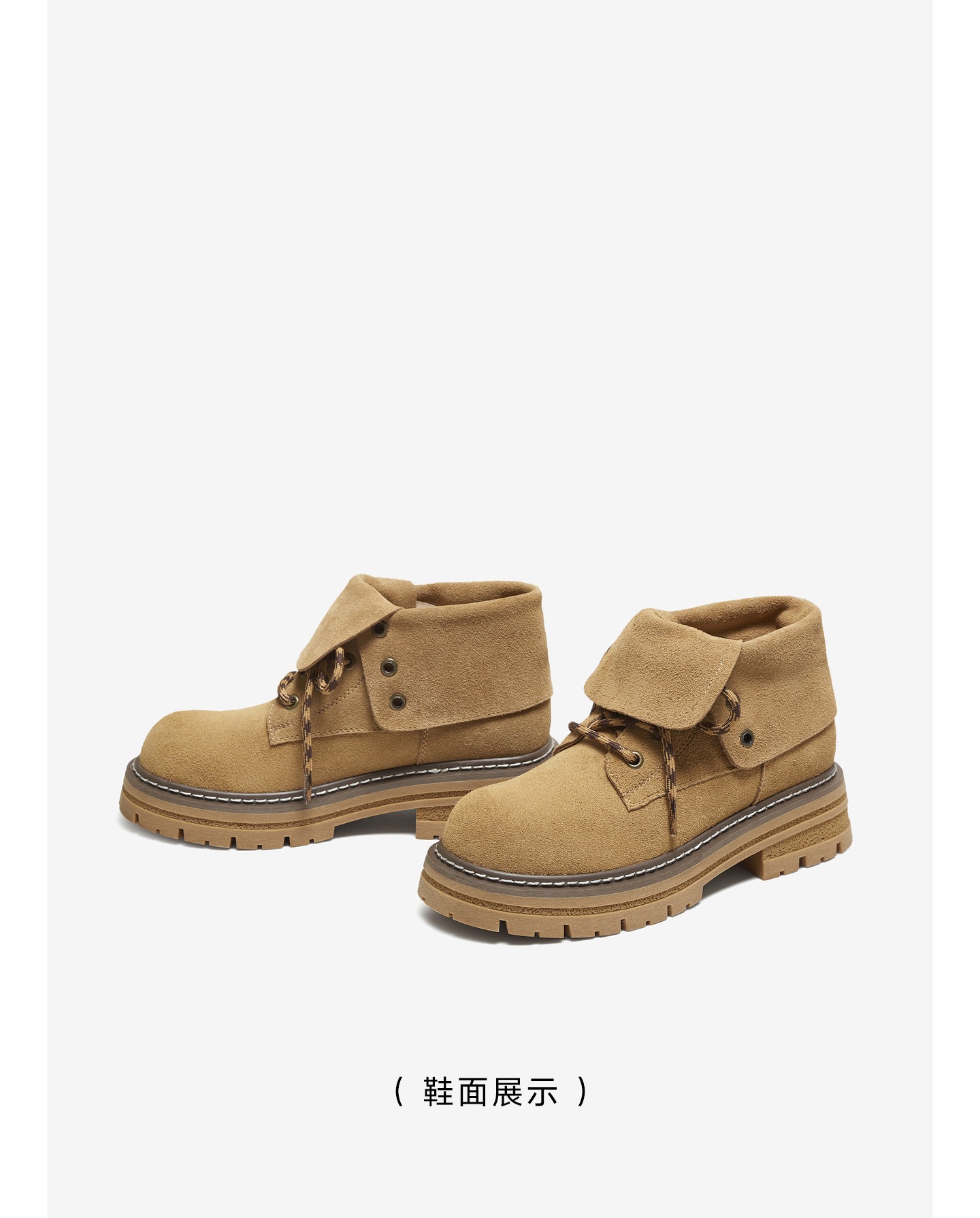 | 鞋底材质:橡胶底 | 靴筒内里材质:PU革织物面料 | 内增高:无 | 鞋面材质:牛剖层革 | 闭合方式:系带 |