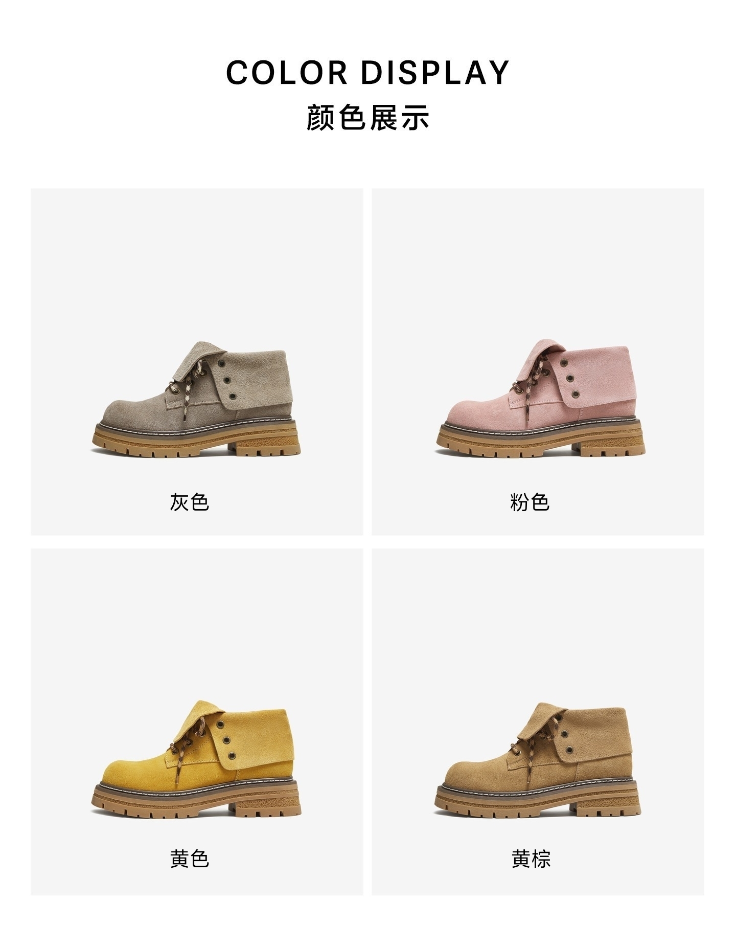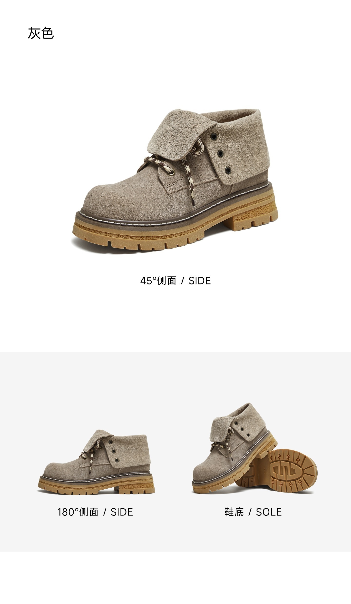 | 鞋底材质:橡胶底 | 靴筒内里材质:PU革织物面料 | 内增高:无 | 鞋面材质:牛剖层革 | 闭合方式:系带 |