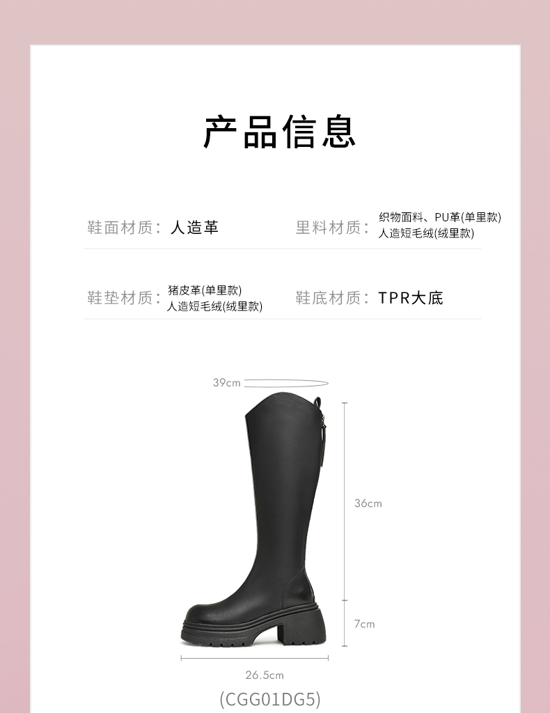 | 配跟:有 | 靴筒口围:39CM | 上市时间:2025年冬季 | 鞋类流行款式:时装靴 | 鞋头款式:圆头 |
