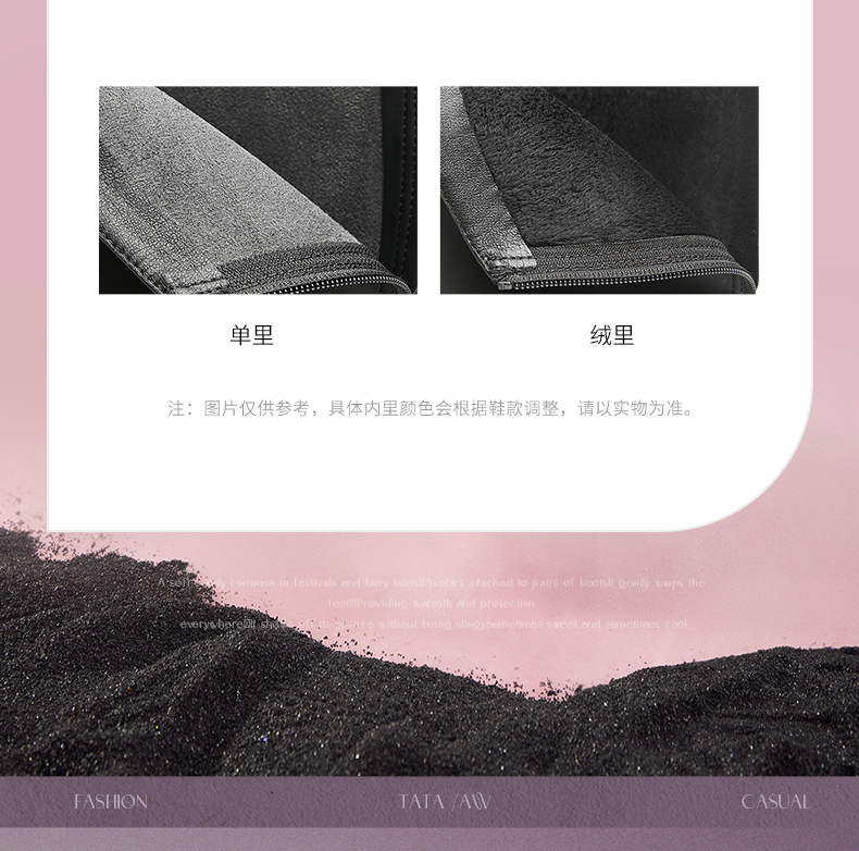 | 鞋底材质:TPR | 靴筒内里材质:PU革织物面料 | 内增高:无 | 鞋面材质:人造革 | 闭合方式:后拉链 |