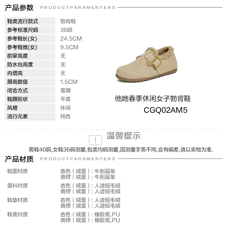 | 配跟:有 | 上市时间:2025年春季 | 鞋类流行款式:勃肯鞋 | 鞋头款式:圆头 | 鞋面图案:纯色 |