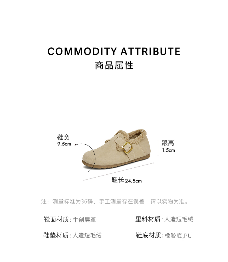 | 配跟:有 | 上市时间:2025年春季 | 鞋类流行款式:勃肯鞋 | 鞋头款式:圆头 | 鞋面图案:纯色 |